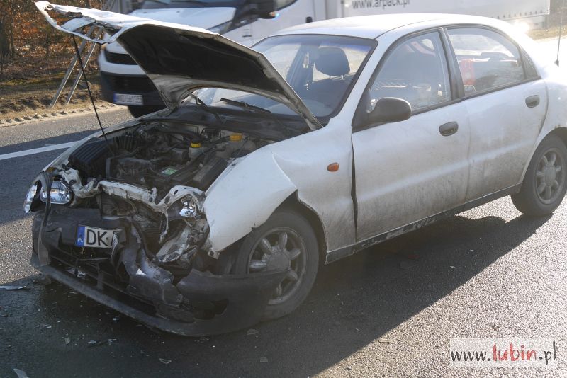 Dwie kobiety trafiły do szpitala w wyniku wypadku, do jakiego doszło na drodze z Lubina do Polkowic. BMW najpierw uderzyło w bariery ochronne, a później wjechało w nie daewoo lanos.