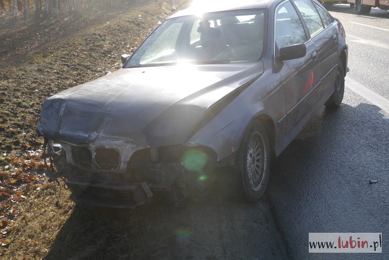 Wypadki właściwie były dwa. Zaczęło się od BMW, którym z Lubina w kierunku Polkowic jechały dwie kobiety. – Według relacji obu pań, jechały lewym pasem, obok jechał biały bus, który w pewnym momencie zaczął zjeżdżać na ich pas. Wtedy kierująca BMW, żeby uniknąć zderzenia, zjechała i uderzyła w barierę ochronną – relacjonuje sierżant sztabowy Anna Szajbler z lubińskiej policji.