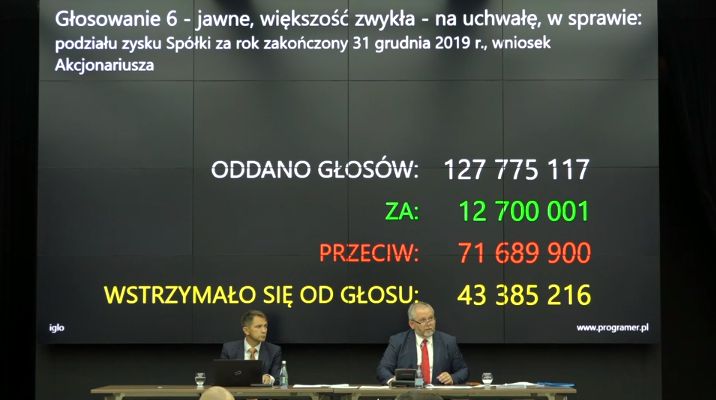 Ostatecznie, po półgodzinnej przerwie w obradach, jego wniosek nie został przyjęty, ale zdołał zebrać poparcie 9,94 proc. głosów, co stanowi zarazem 6,35 proc. całego akcjonariatu spółki, liczącego 200 mln akcji.