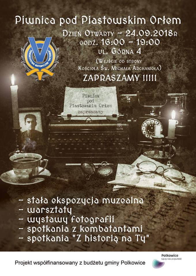 W poniedziałek, 24 września, polkowickie Towarzystwo Historyczne „Victoria” organizuje Dzień Otwarty w Piwnicy pod Piastowskim Orłem.