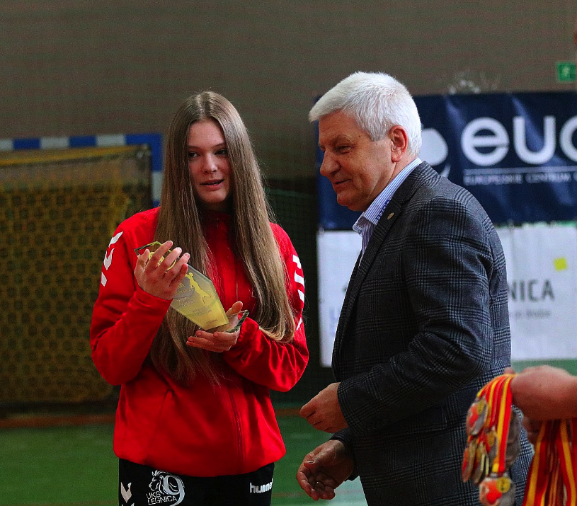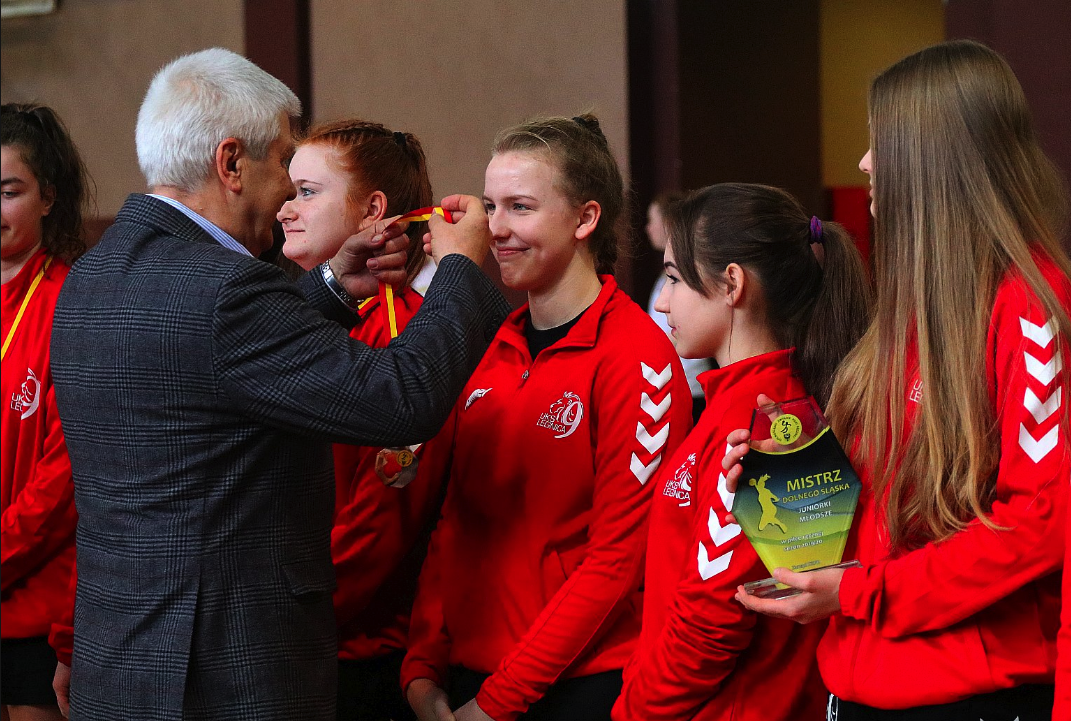W dniu 01.03.2020 r. juniorki młodsze EuCO-UKS Dziewiątki Legnica odebrały z rąk przedstawiciela Dolnośląskiego Związku Piłki Ręcznej – I wiceprezesa Franciszka Wujcika pamiątkową statuetkę oraz udekorowane zostały złotymi medalami.