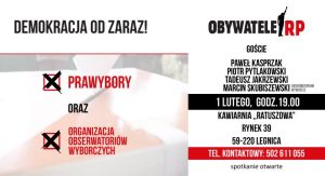 Prawybory, jako pierwszy krok ku odsunięciu PiS-u od władzy i organizacja społecznej kontroli nad wyborami – to temat spotkania, które organizuje dziś legnicki Komitet Obrony Demokracji. Gośćmi debaty będą: Paweł Kasprzak, Piotr Pytlakowski i Tadeusz Jakrzewski ze stowarzyszenia Obywatele RP oraz Marcin Skubiszewski z Obserwatorium Wyborczego.
