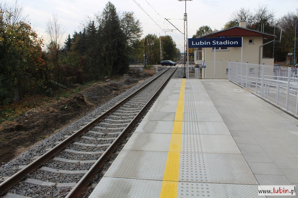 Stacja Lubin Stadion powstała dzięki modernizacji linii Legnica – Rudna Gwizdanów. Położona jest w odległości 1,5 km od stacji Lubin, w kierunku Rudnej Gwizdanów, tuż przy przejeździe na ul. Marii Skłodowskiej-Curie. W ciągu doby zaplanowano tu 8 par pociągów. Czas przejazdu do Lubina wyniesie 2 minuty, a do Legnicy 22 min.