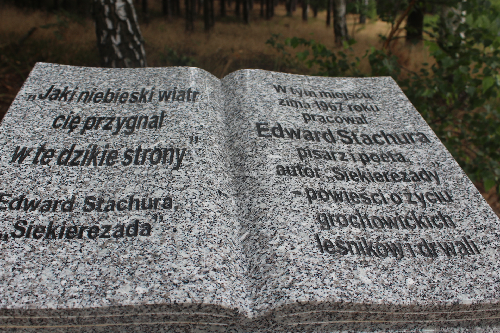 „W tym miejscu, zimą 1967 roku pracował Edward Stachura, pisarz i poeta, autor „Siekierezady” – powieści o życiu grochowickich leśników i drwali”. Taki napis widnieje na obelisku odsłoniętym dziś podczas kolejnej „Stachuriady”, zorganizowanej na polanie w Grochowicach, gmina Kotla.