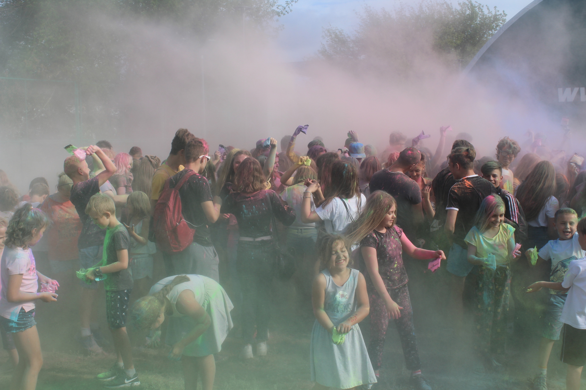 W sumie, nastąpiły trzy eksplozje kolorów i za każdym razem chętnych do tej zabawy, zarówno dzieci, jak i dorosłych nie brakowało. Podczas drugiej akcji uczestnicy nie mogli już doczekać się końca występu artystów na scenie, ale w końcu nastąpił wybuch i zrobiło się kolorowo.