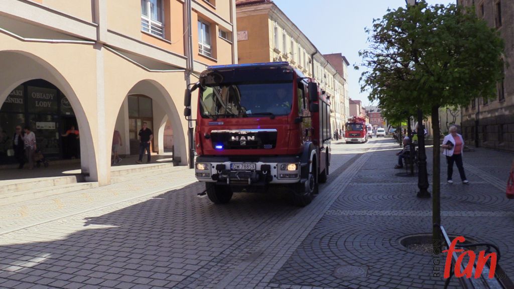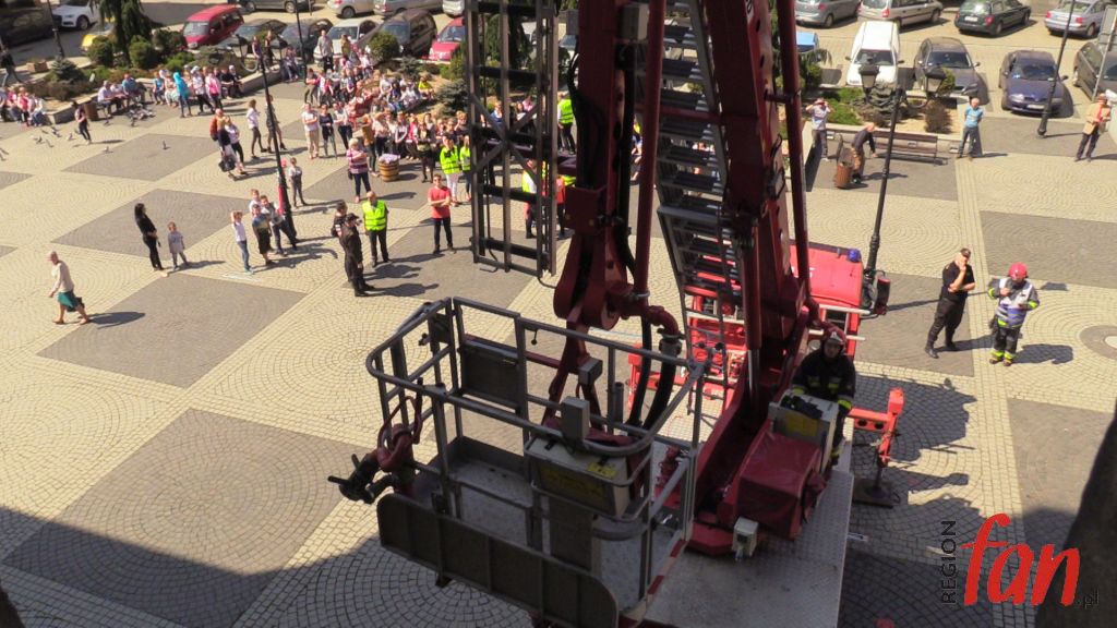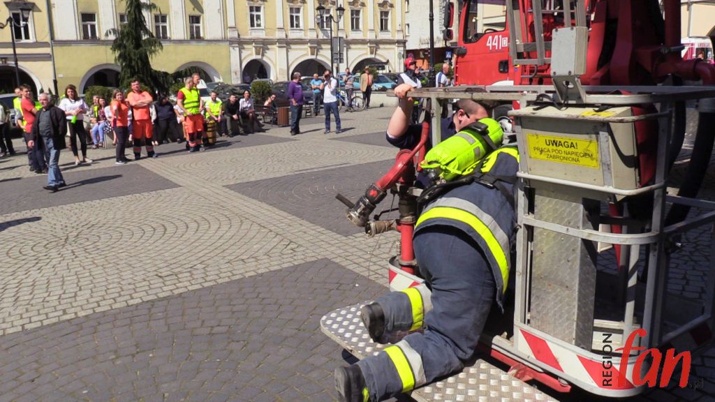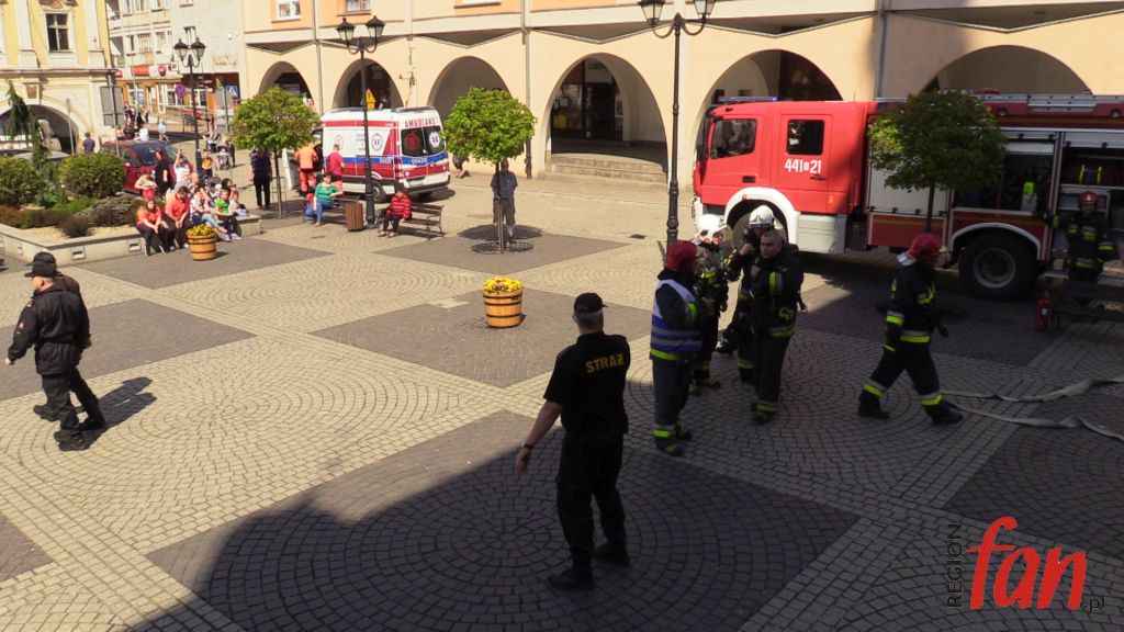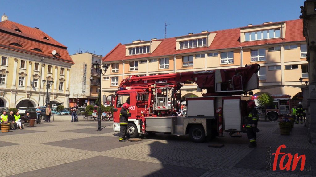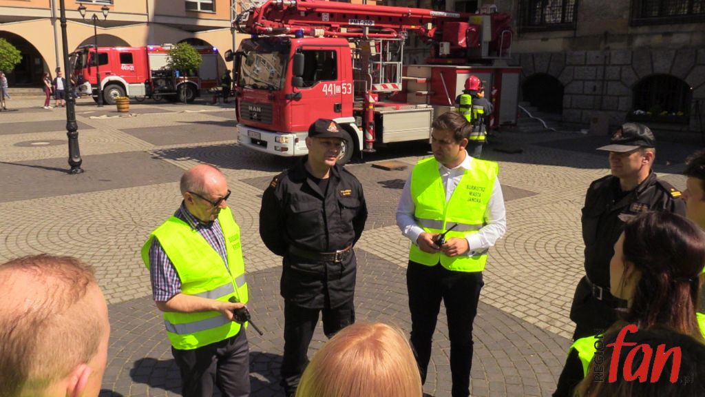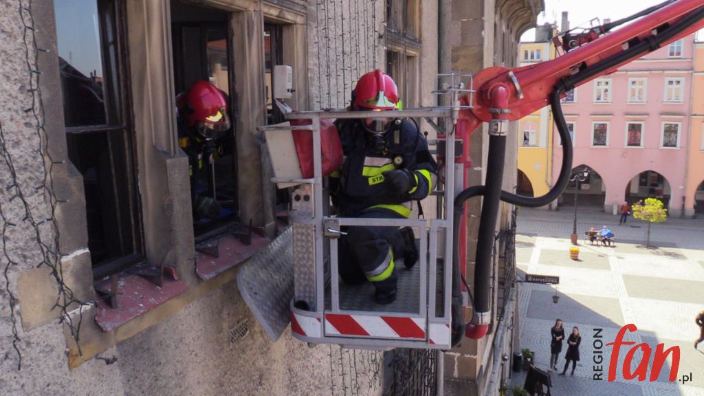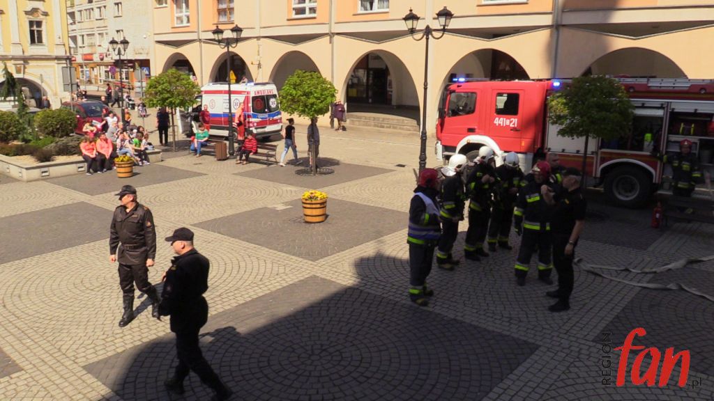 W czwartek oprócz hejnału z wieży ratusza w południe usłyszeć można było wycie strażackich syren. W rynku pojawiło się kilka wozów bojowych, karetka, a pod oknem burmistrza zaparkował podnośnik z koszem do ewakuacji. Z okien magistratu wydobywał się dym. Na szczęście były to tylko ćwiczenia.