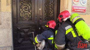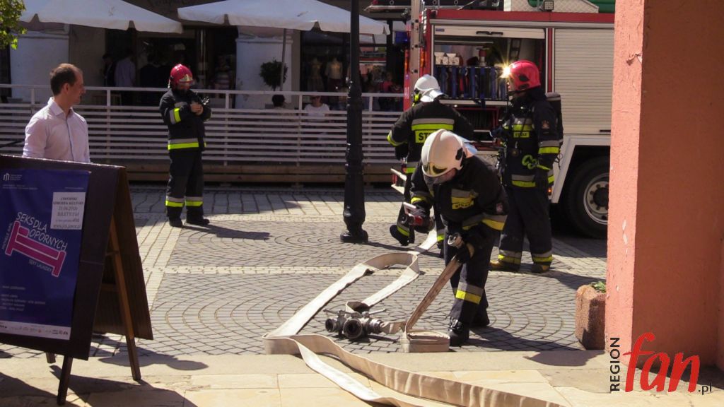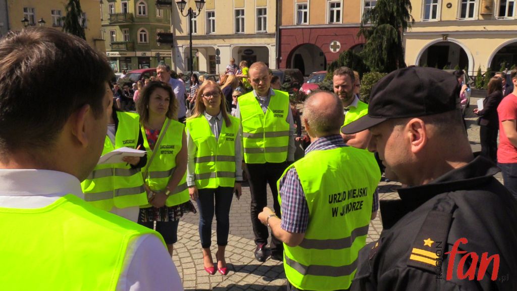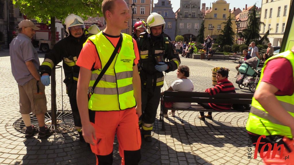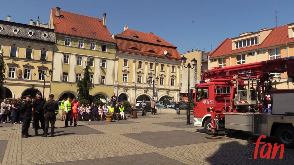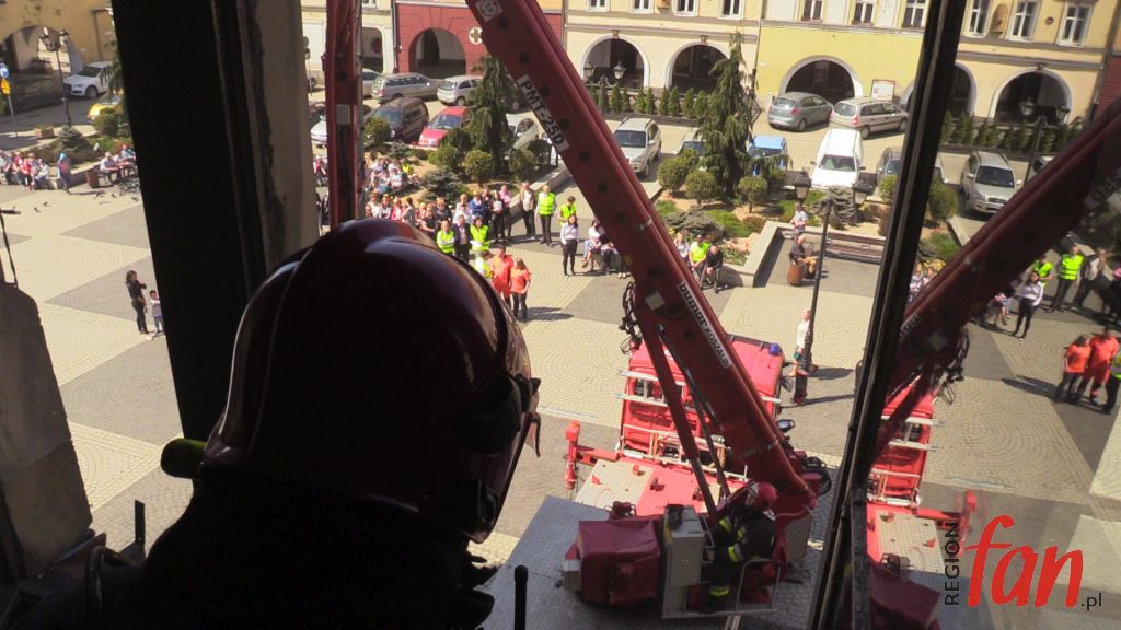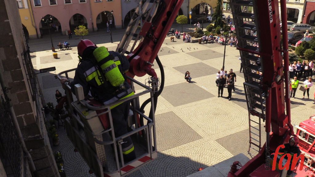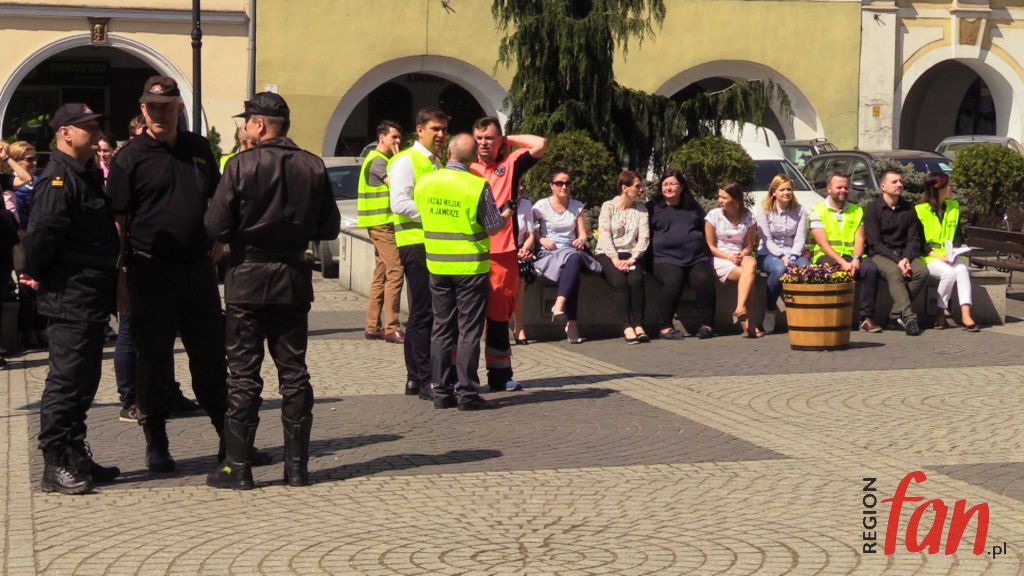 W czwartek oprócz hejnału z wieży ratusza w południe usłyszeć można było wycie strażackich syren. W rynku pojawiło się kilka wozów bojowych, karetka, a pod oknem burmistrza zaparkował podnośnik z koszem do ewakuacji. Z okien magistratu wydobywał się dym. Na szczęście były to tylko ćwiczenia.