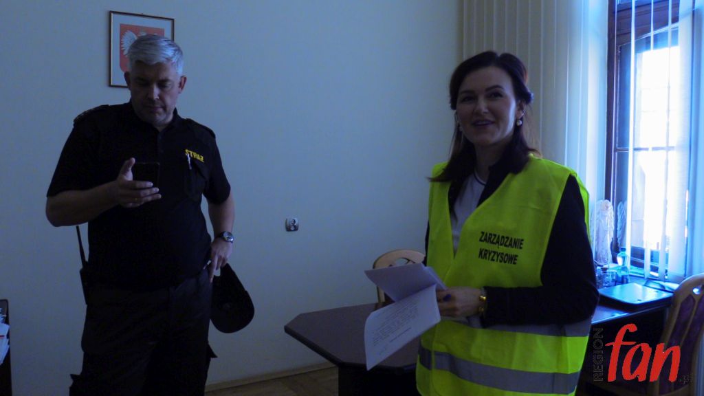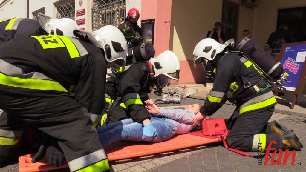 Wyposażeni w aparaty tlenowe, z ciężkimi butlami na plecach strażacy musieli przeszukać pomieszczenia i ewakuować uwięzione osoby. Zaskoczeni urzędnicy byli jednak zdyscyplinowani i zebrali się na placu przed ratuszem. Działania koordynował sztab, na którego czele stał burmistrz. Włodarz miasta wydawał przez radiotelefon polecenia i na bieżąco był informowany o przebiegu akcji. Po zakończonych ćwiczeniach odbyło się spotkanie z pracownikami magistratu. Już bez udziału mediów omówiono wnioski z symulowanej akcji. Ratownik medyczny Tomasz Wala przeprowadził też krótki kurs udzielania pierwszej pomocy.