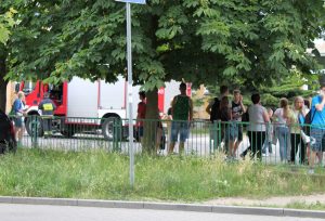 Na wezwanie przyjechało w sumie sześć strażackich zastępów, co wynikało z procedur dotyczących podobnych zdarzeń w szkołach. – Dopiero na miejscu okazało się, że w sali nikt nie przybywał i że zagrożenie jest mniejsze niż założyliśmy – wyjaśnia st. kpt. Terpiłowski.
