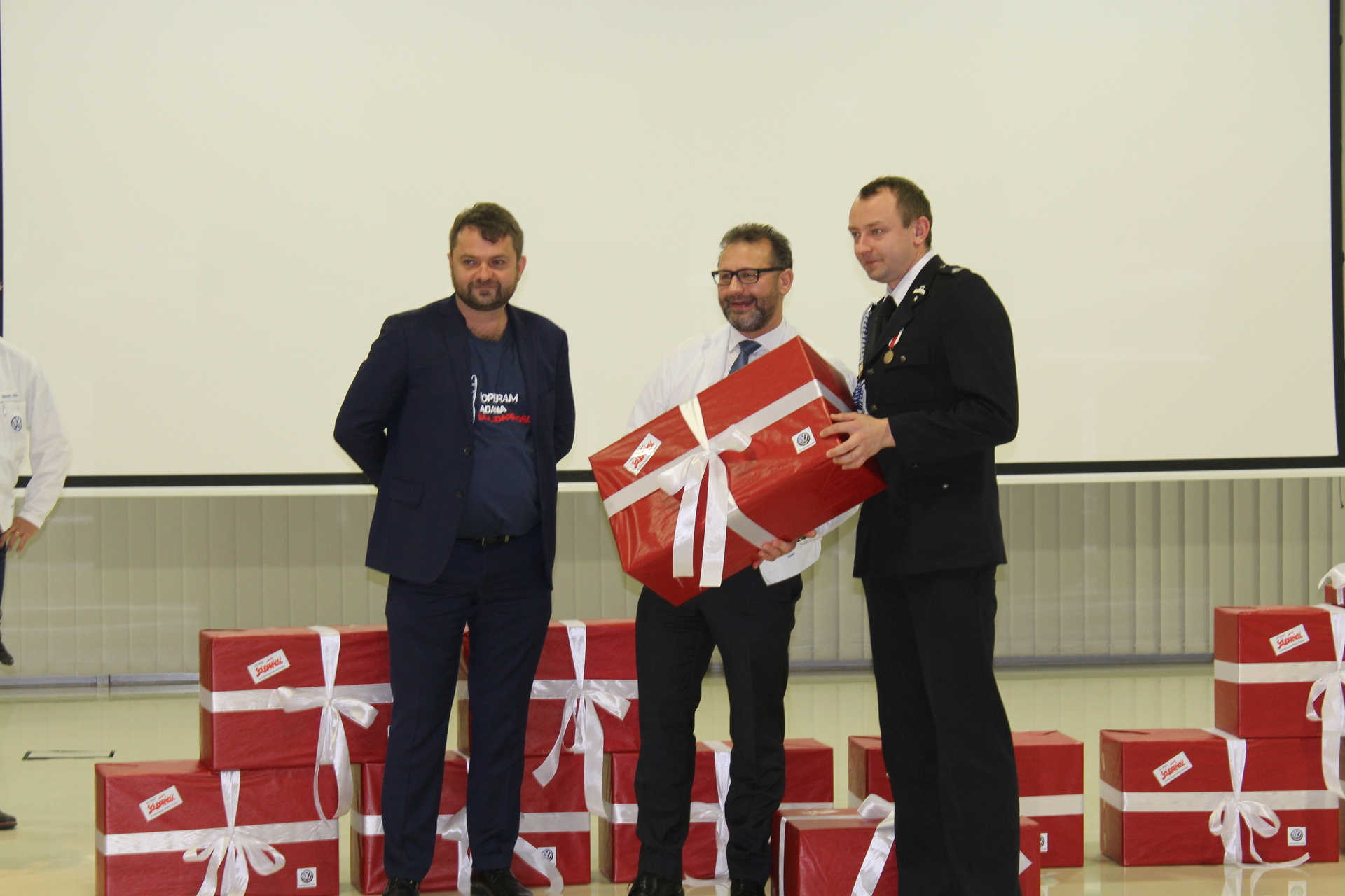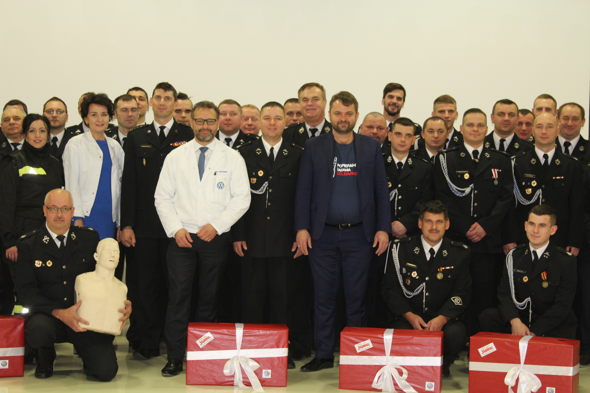 – Z okazji 20-lecia naszej działalności postanowiliśmy we współpracy ze związkami zawodowymi wesprzeć 20 jednostek ochotniczych straży pożarnych fantomami – mówił prezes Dirk Strümpfler. – Koszty zakupu tych urządzeń sfinansowali nasi pracownicy, związki zawodowe oraz VW MP. Wielu naszych pracowników także należy do OSP, są przeszkoleni w udzielaniu pomocy – dodał.