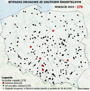 Bieżąca aktualizacja, w tym zwłaszcza wizualizacja, ma na celu zwrócenie uwagi na skalę tragedii, do jakich dochodzi na polskich drogach. Czy obraz mapy skłoni do refleksji użytkowników dróg, czy tegoroczne wakacje będą bezpieczne …?