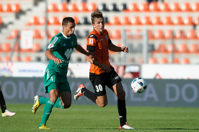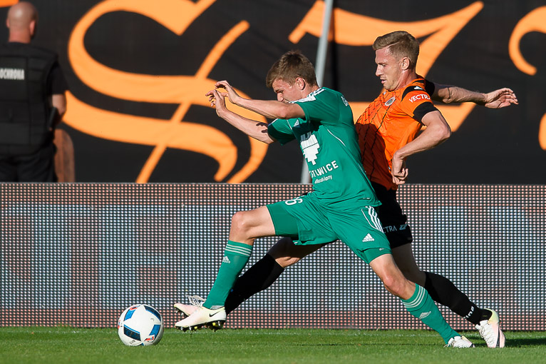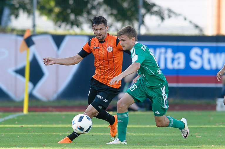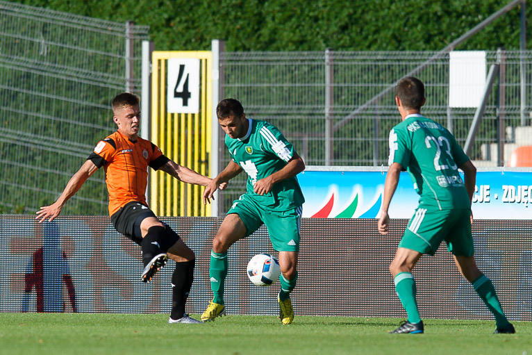 Kto wie jakby ułożyło się spotkanie, gdyby sytuacje sam na sam wykorzystał Mateusz Machaj. Z biegiem czasu do sytuacji bramkowych zaczęli dochodzić goście, choć też nie potrafili ich wykorzystać. Kiedy wydawało się, że w pierwszej połowie bramki nie padną w doliczonym czasie gry wynik spotkania otworzył Paweł Abramowicz.