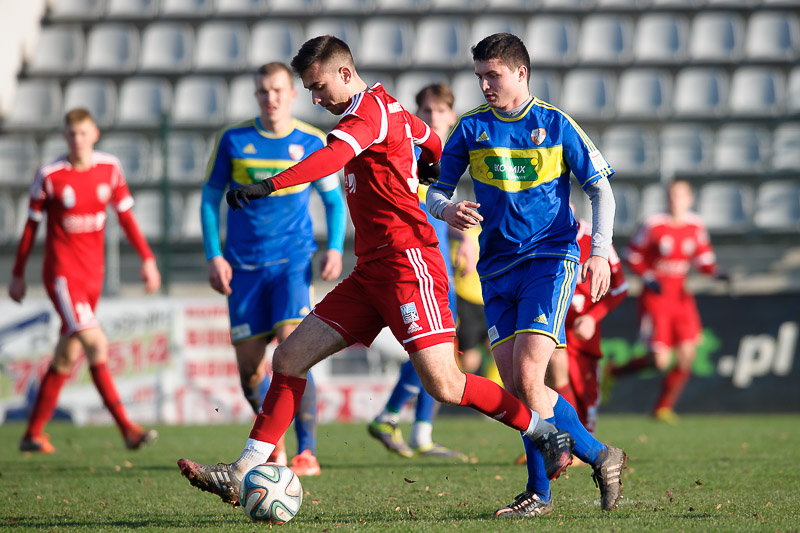 Chrobry dobrze zaczął. Odważniej ruszył do przodu i na pierwszą dobrą okazję nie trzeba było długo czekać. Już po 120 sekundach Jacek Kozaczyński musiał interweniować po strzale Łukasza Szczepaniaka. Później jeszcze z… przewrotki uderzał Karol Danielak, ale i on został zastopowany. Do trzech razy sztuka. W 22. minucie sporą pracę wykonał na lewej stronie Dominik Kościelniak. Swój rajd i drybling zakończył mocną wrzutką na jednego z niższych na boisku Danielaka, po czym ten głową wstrzelił się 1:0.