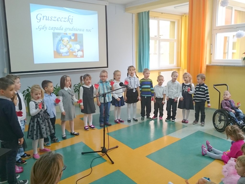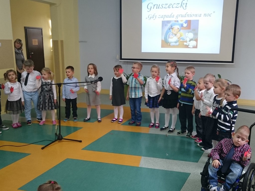 Swoje umiejętności wokalne zaprezentowały również najmłodsze dzieci z oddziału żłobkowego – Jagódki. Dzieci wykonały kolędy tradycyjne oraz pastorałki.