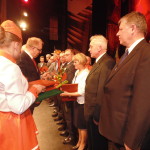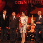 AHUTNIKMedale, odznaki honorowe, listy gratulacyjne i statuetki św. Floriana otrzymali zasłużeni pracownicy Hut Miedzi: „Głogów”, „Legnica” i „Cedynia” podczas dzisiejszej centralnej akademii z okazji Dnia Hutnika. A do całej załogi tych zakładów trafiły słowa podziękowania za dotychczasową pracę. W uroczystości, która odbyła się w Miejskim Ośrodku Kultury w Głogowie wzięli udział m.in. Zdzisław Gawlik, sekretarz stanu w Ministerstwie Skarbu Państwa, parlamentarzyści: Ewa Drozd, Małgorzata Sekuła-Szmajdzińska, Ryszard Zbrzyzny i Robert Kropiwnicki oraz Herbert Wirth, prezes KGHM i dyrektorzy hut, a także samorządowcy. Orkiestra Zakładowa Huty Miedzi „Głogów” odegrała hymny: państwowy i hutniczy. Potem była niespodzianka.