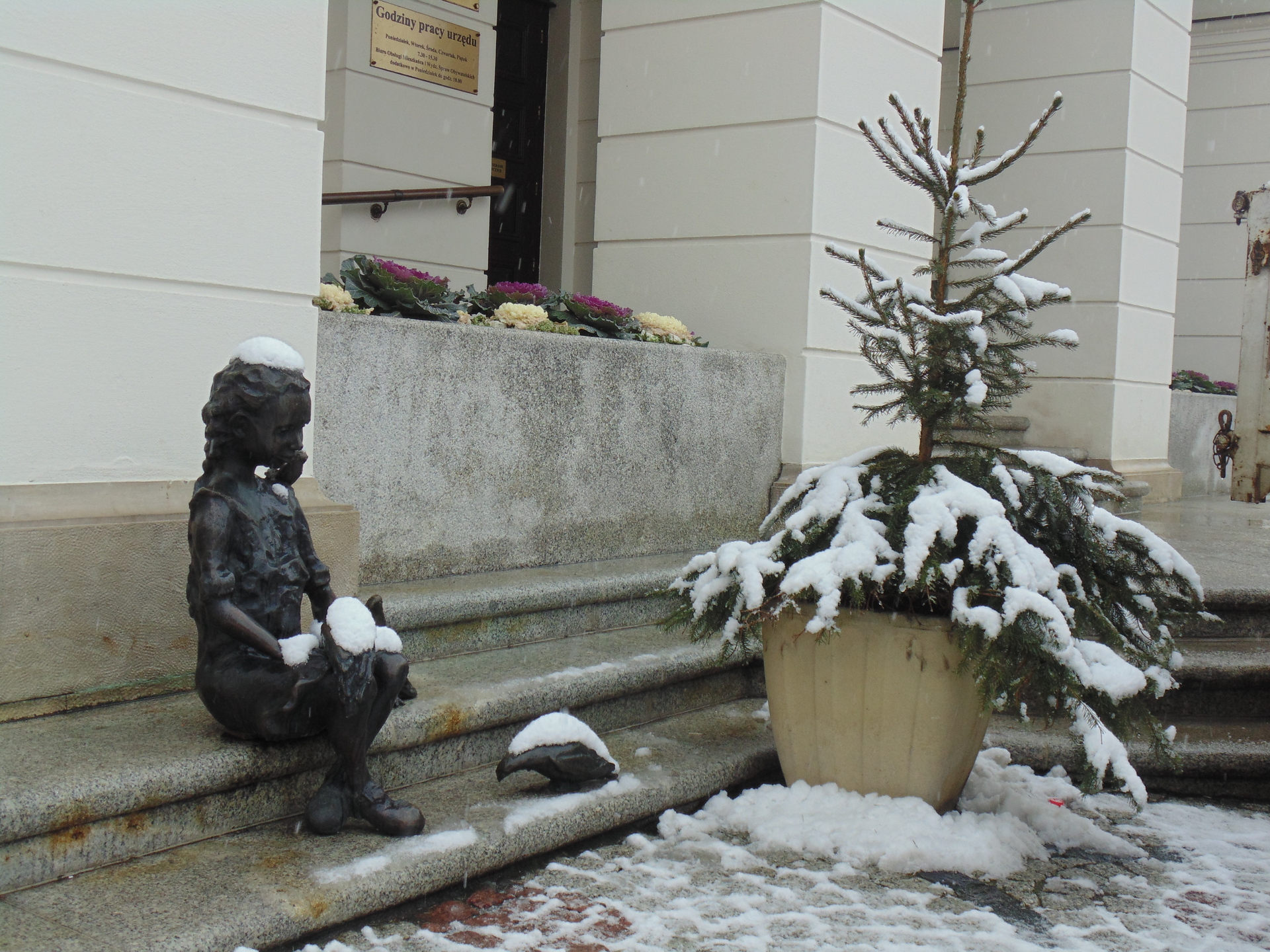Ale naszą uwagę zwróciły też rzeźby z brązu: dziewczynki karmiącej gołębie, na schodach głogowskiego ratusza, której dzieci nadały imię Pola (na zdj.) oraz rezolutnego chłopca z procą, stojącego przy sukiennicach, o imieniu Staś. Autorem posążków jest Maciej Cendlak (w planach jest seria figurek dzieci głogowskich, które będą zdobić Stare Miasto).