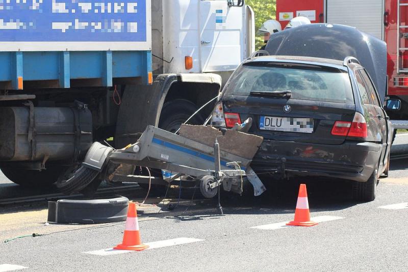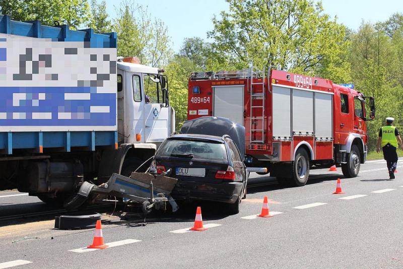 – W tył osobowego BMW z przyczepką, które skręcało w lewo w kierunku Niemstowa, uderzyła ciężarówka – relacjonuje aspirant Sylwia Serafin z lubińskiej policji. – Policjanci będą wyjaśniać przyczyny tego zdarzenia – dodaje.