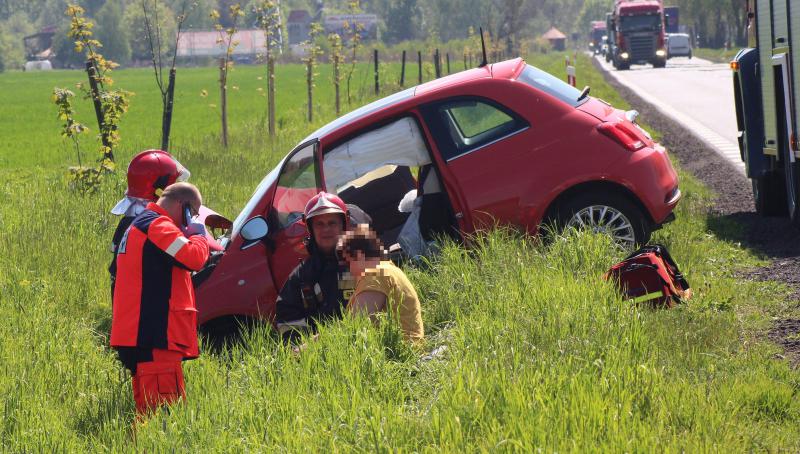 W tym samym czasie, przy wjeździe do Niemstowa od strony Lubina do rowu wjechał fiat 500.