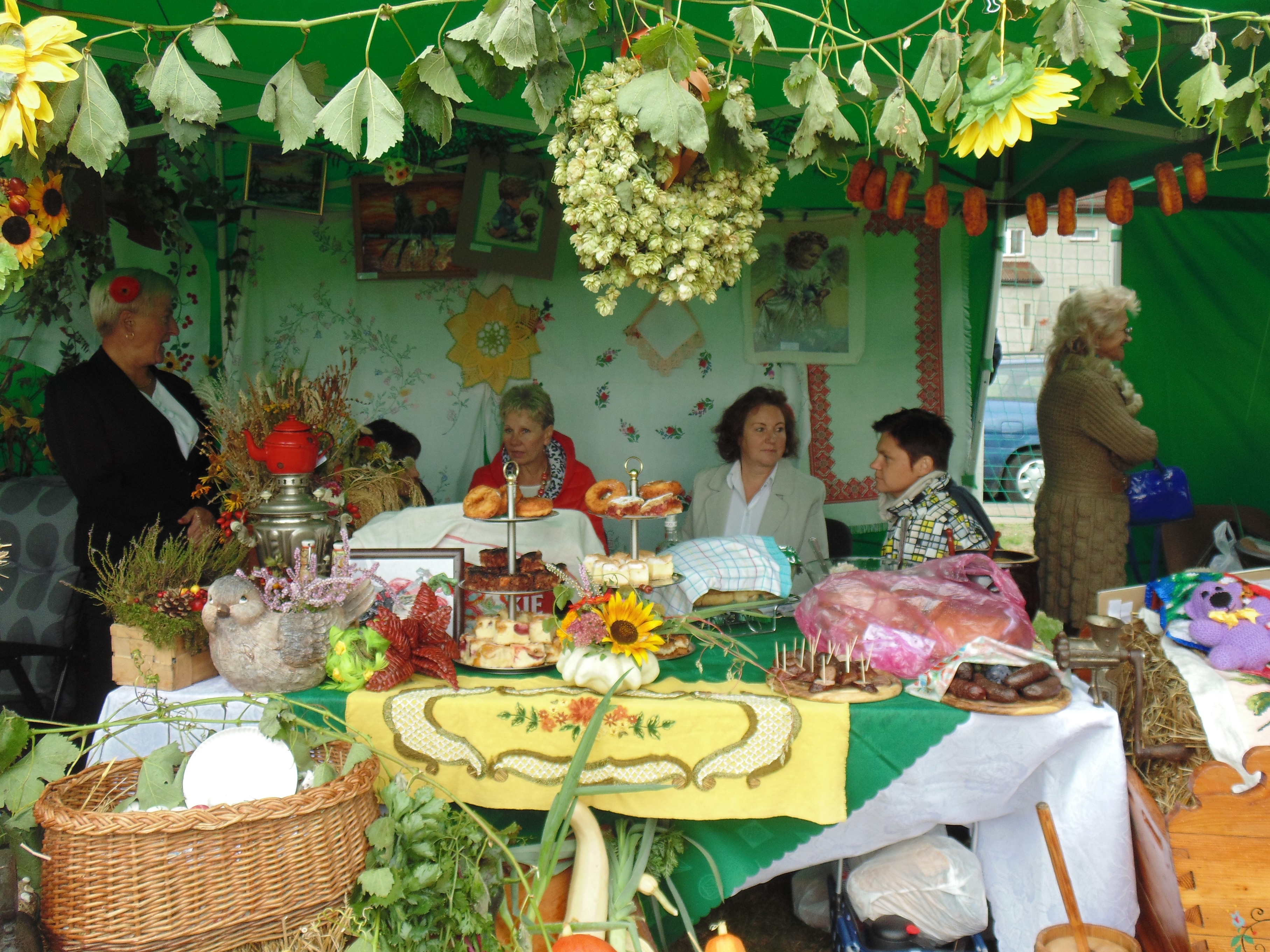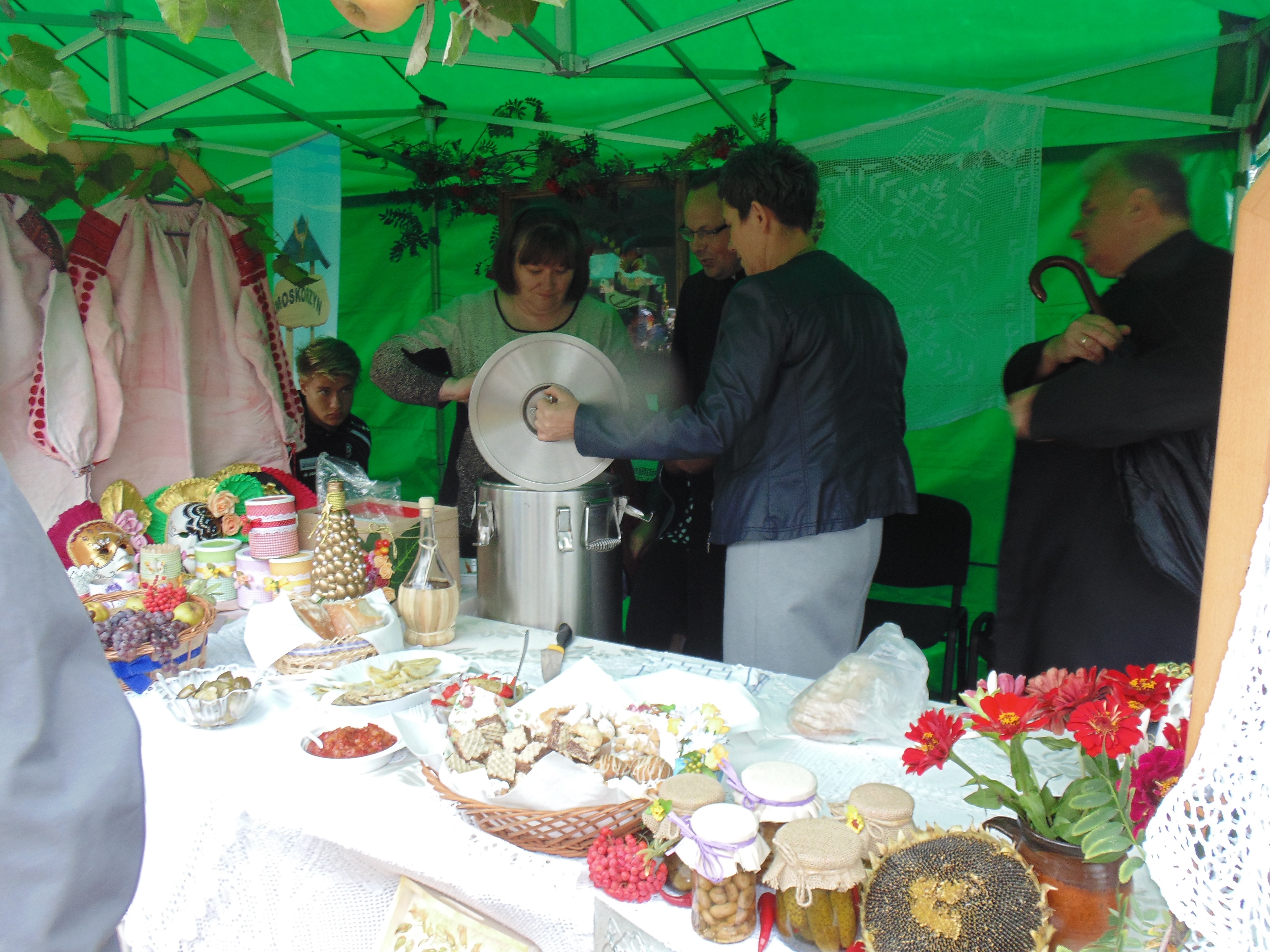 Mieszkańcy poszczególnych wsi zachęcali do spróbowania m.in. przeróżnych sałatek, krokietów z barszczykiem, bigosu, gulaszu oraz ciast. Chętnych nie brakowało. Stoiska, jak widać na zdjęciach, były bardzo kolorowe, a przy niektórych można podziwiać stare sprzęty domowe, np. radia czy naczynia. Znalazły się tam nawet okazy broni, a raczej tego, co z niej zostało, choć wrażenie robiła. Na scenie wystąpiły m.in. zespoły ludowe „Sobinianie” i „Podolanki”.