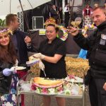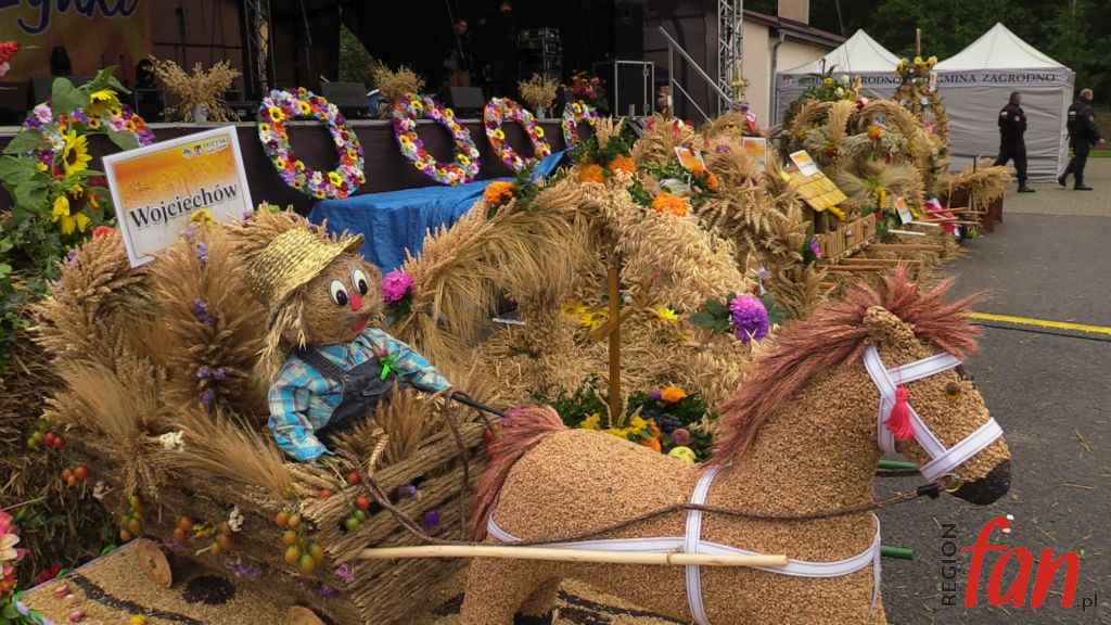 Trzeba przyznać, że tegoroczne dożynki w Zagrodnie przygotowane były z wielką pompą. Wyznaczone miejsca parkingowe, ogromna scena z telebimem, nagrody pieniężne dla wszystkich sołectw, które zaangażowały się w wykonanie wieńców dożynkowych oraz „deser” – występ Czadomana i zespołu Trzy Korony. Taka koncepcja nie mogła się nie udać i mimo deszczu, na boisku sportowym obok urzędu gminy, biesiadników z godziny na godzinę przybywało.