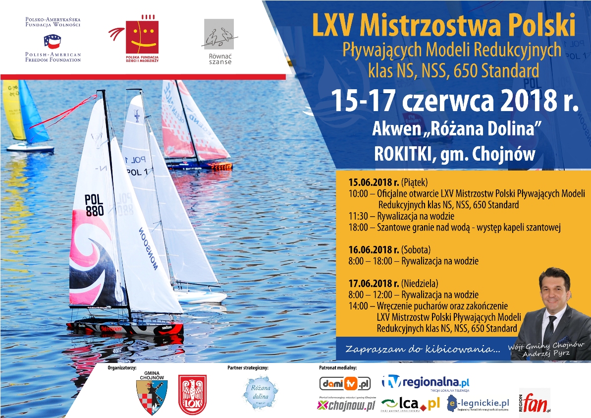 Mistrzostwa Polski Modeli Pływających to doskonała propozycja na spędzenie weekendu. W jednym miejscu znajdziemy misternie wykonane modele pływające, sportowe emocje, smaczną kuchnię i szantową zabawę muzyczną. Organizatorami wydarzenia są: gmina Chojnów, Liga Obrony Kraju oraz Ośrodek „Różana Dolina” w Rokitkach. Impreza odbędzie się dzięki wsparciu Polsko-Amerykańskiej Fundacji Wolności w ramach programu Równać Szanse.