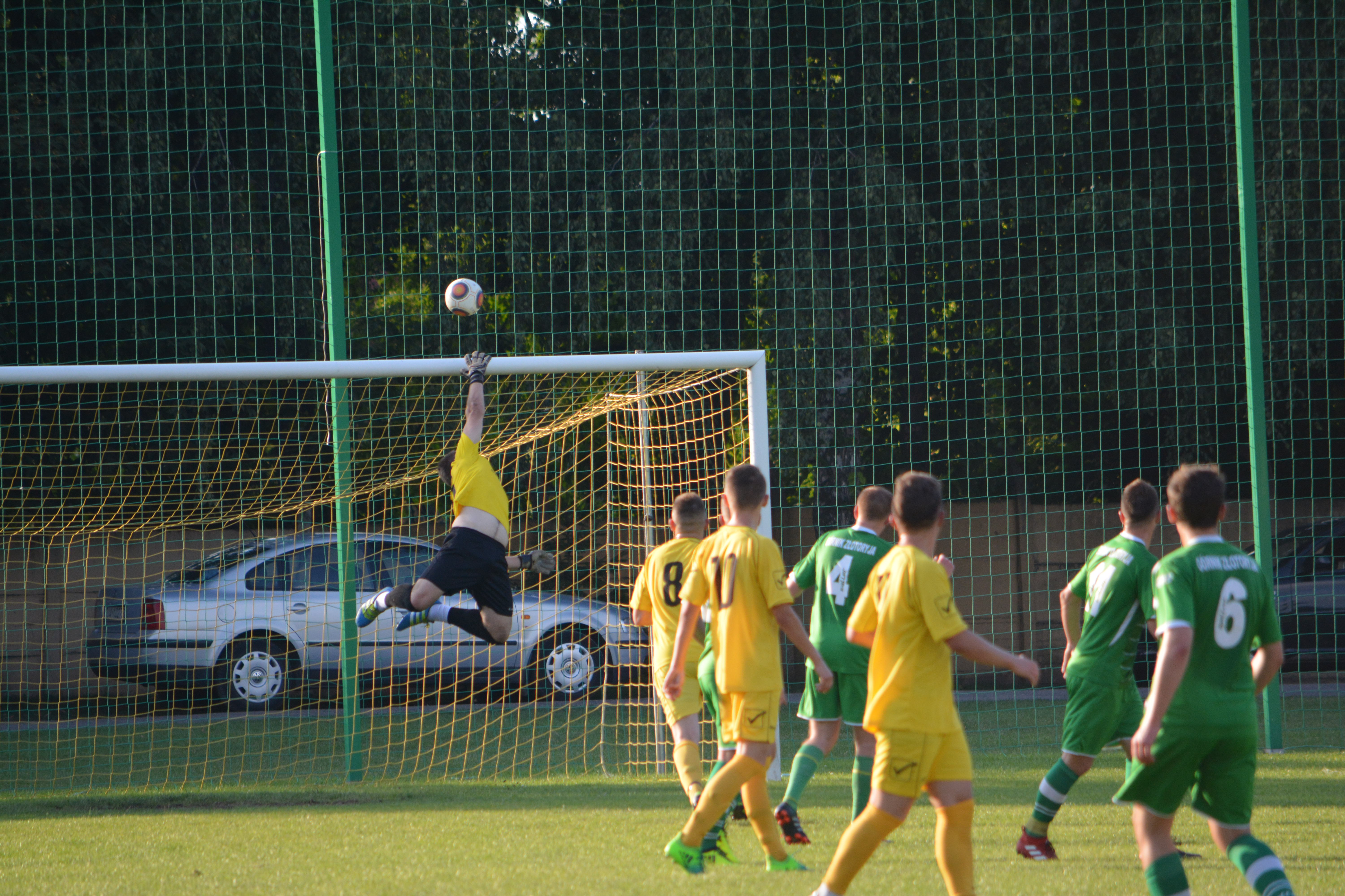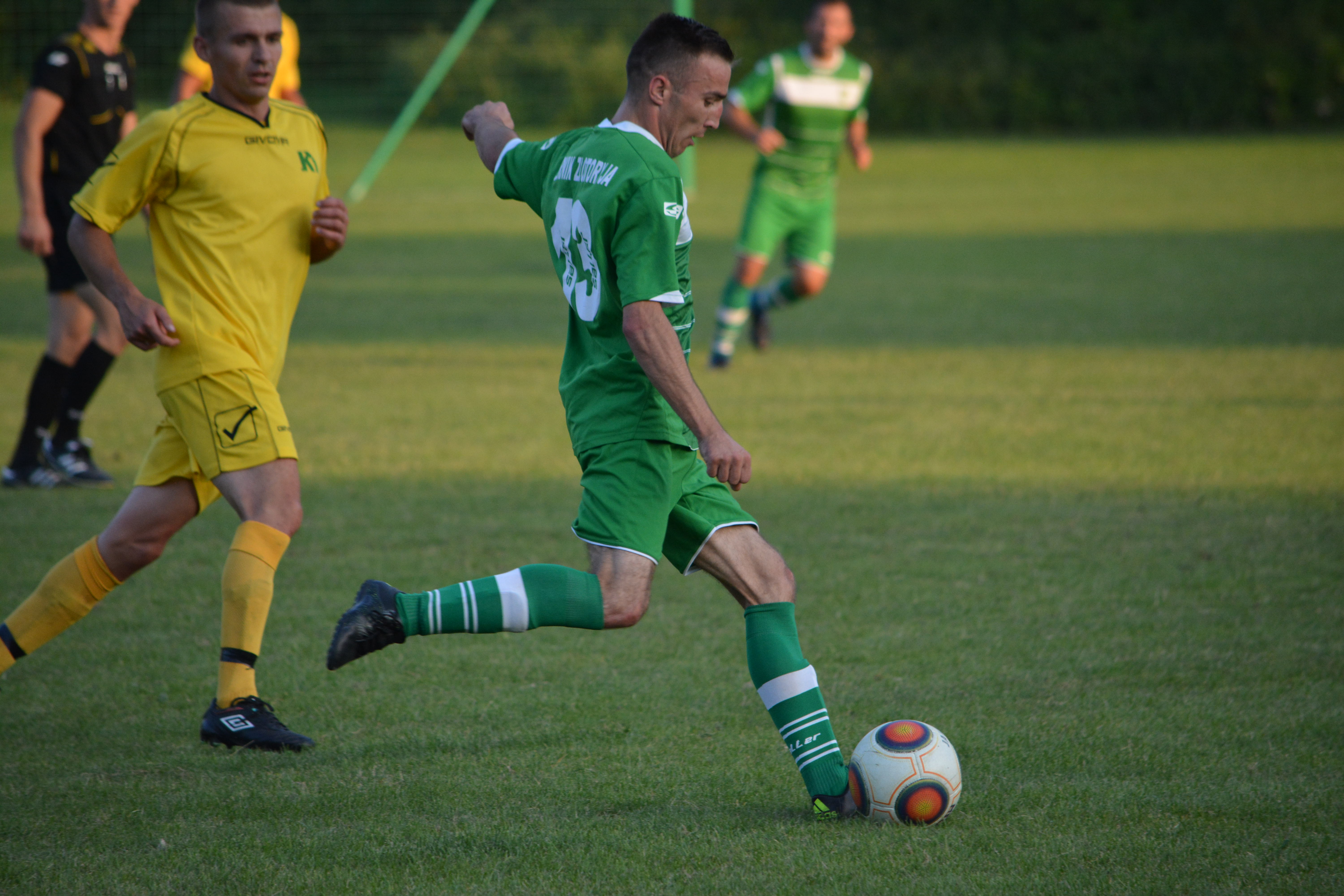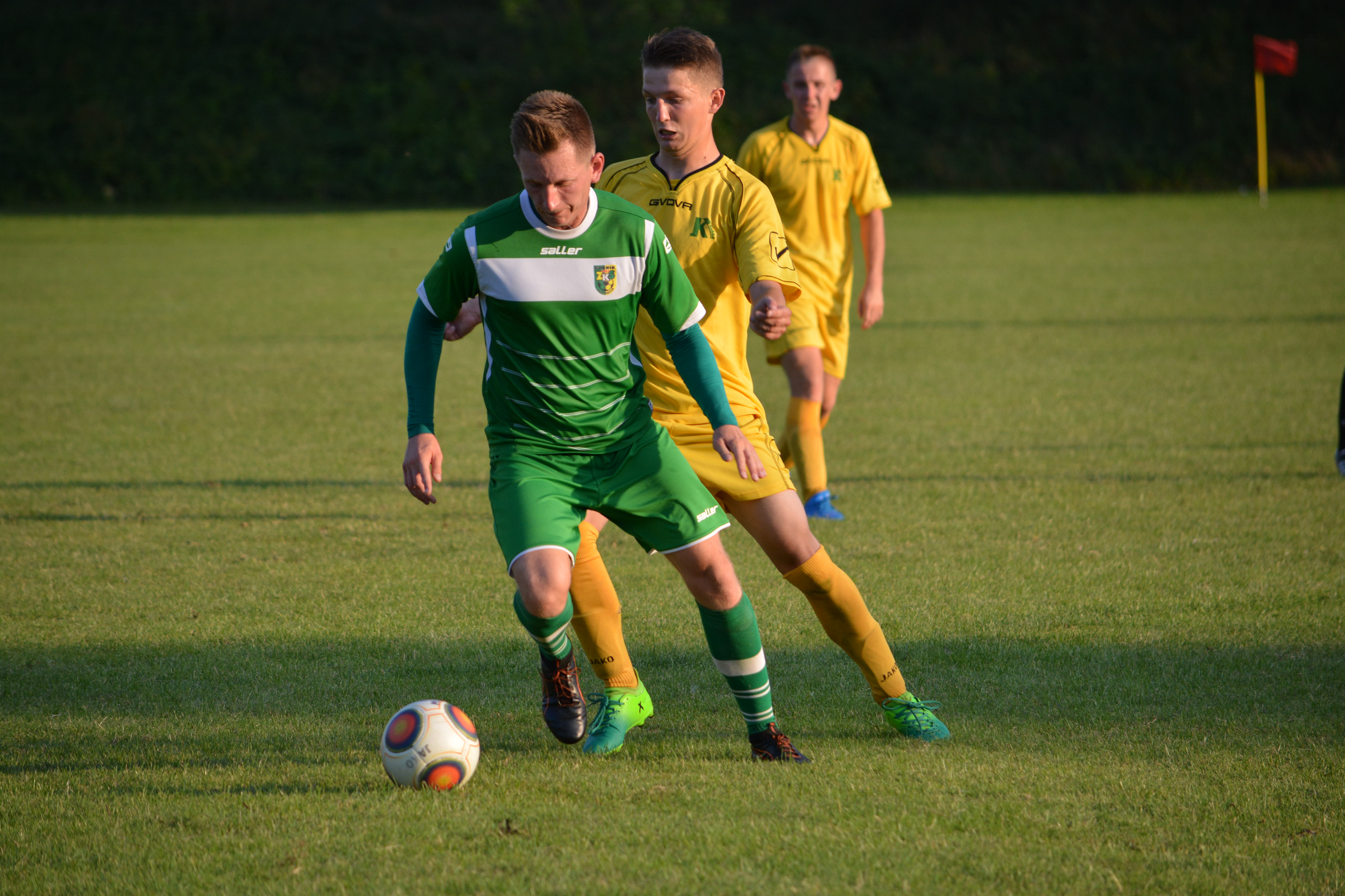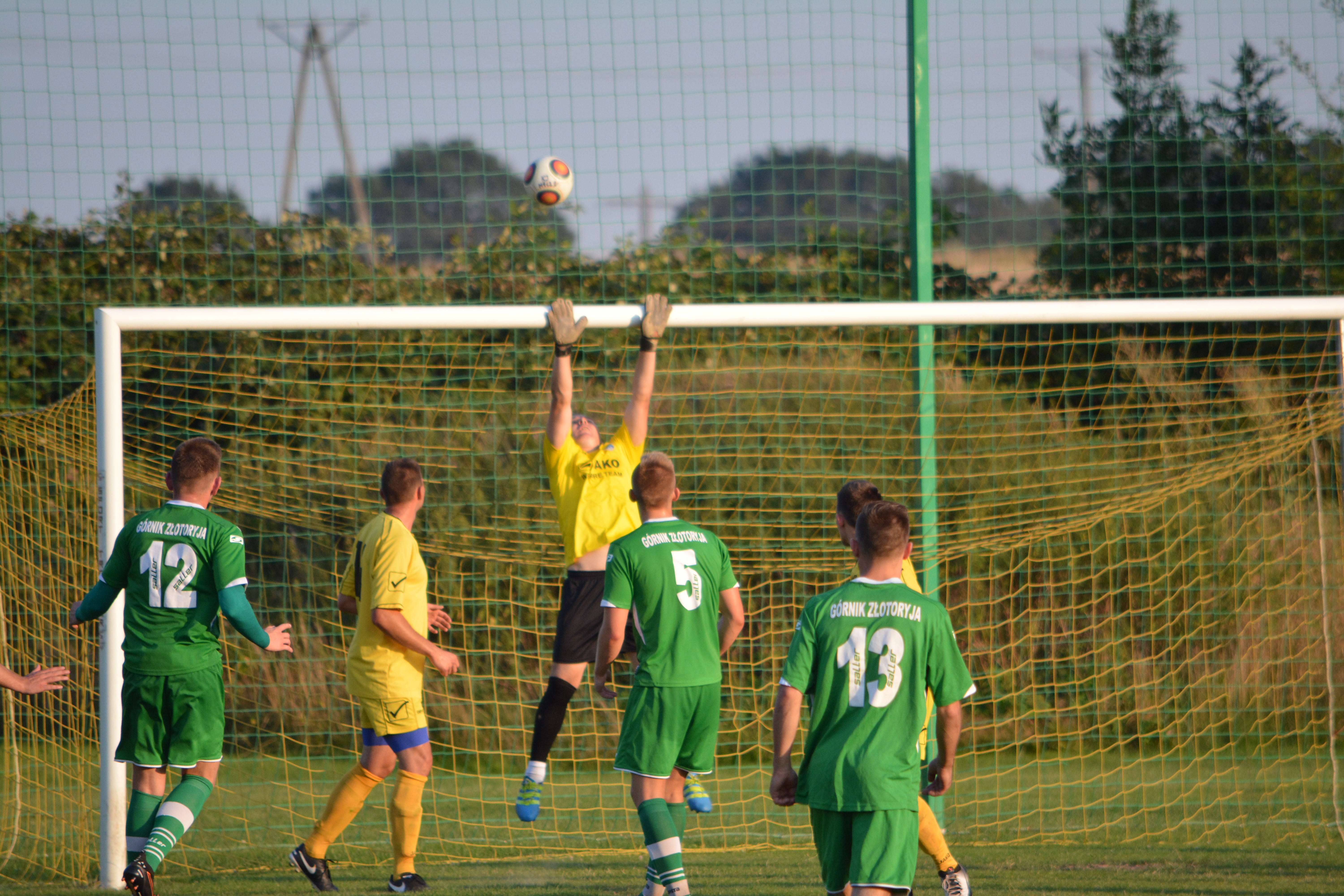 Najpierw w 30 minucie futbolówkę do siatki głową skierował po dośrodkowaniu z rzutu rożnego Kamil Dunaj. Minęło kilka chwil, a golkiper złotoryjan ponownie musiał sięgać po piłkę do siatki. Przepięknym, a przede wszystkim skutecznym uderzeniem z około dwudziestu metrów popisał się Kamil Janoś. Okazji na gole było więcej i różnica między Kuźnią, a Górnikiem mogła być jeszcze większa. W pierwszych 45 minutach team Mirosława Zielenia najbliżej szczęścia był w 25 minucie, kiedy to jeden z jego zawodników sprawdził wytrzymałość bramki Patryka Borka.