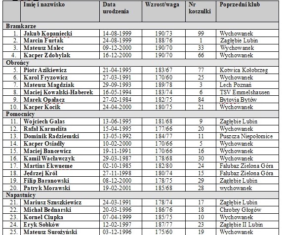 Poniżej pełny skład Górnika Polkowice na sezon 2019/2020.