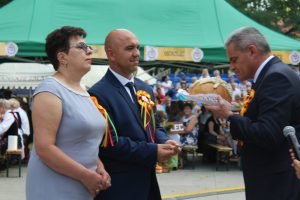 – Susza dała się we znaki i tegoroczne plony są słabsze, a najbardziej odczuły to zboża jare – mówił starosta dożynek, który w tej roli wystąpił po raz pierwszy, a pani Teresa – po raz drugi.