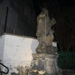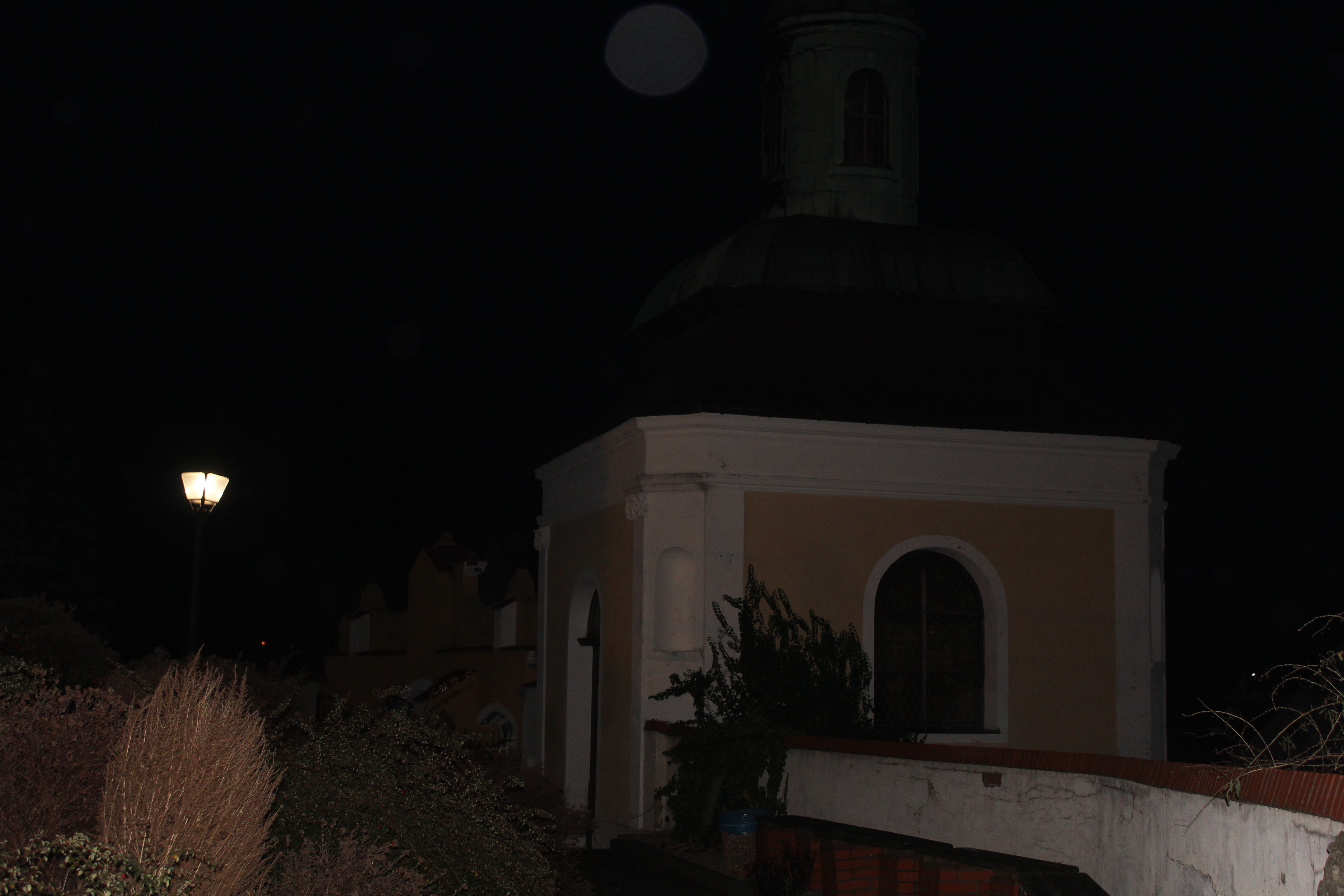 Jadąc po zmroku w kierunku Grodowca, gmina Grębocice, już z dala widać podświetlone mury sanktuarium maryjnego.