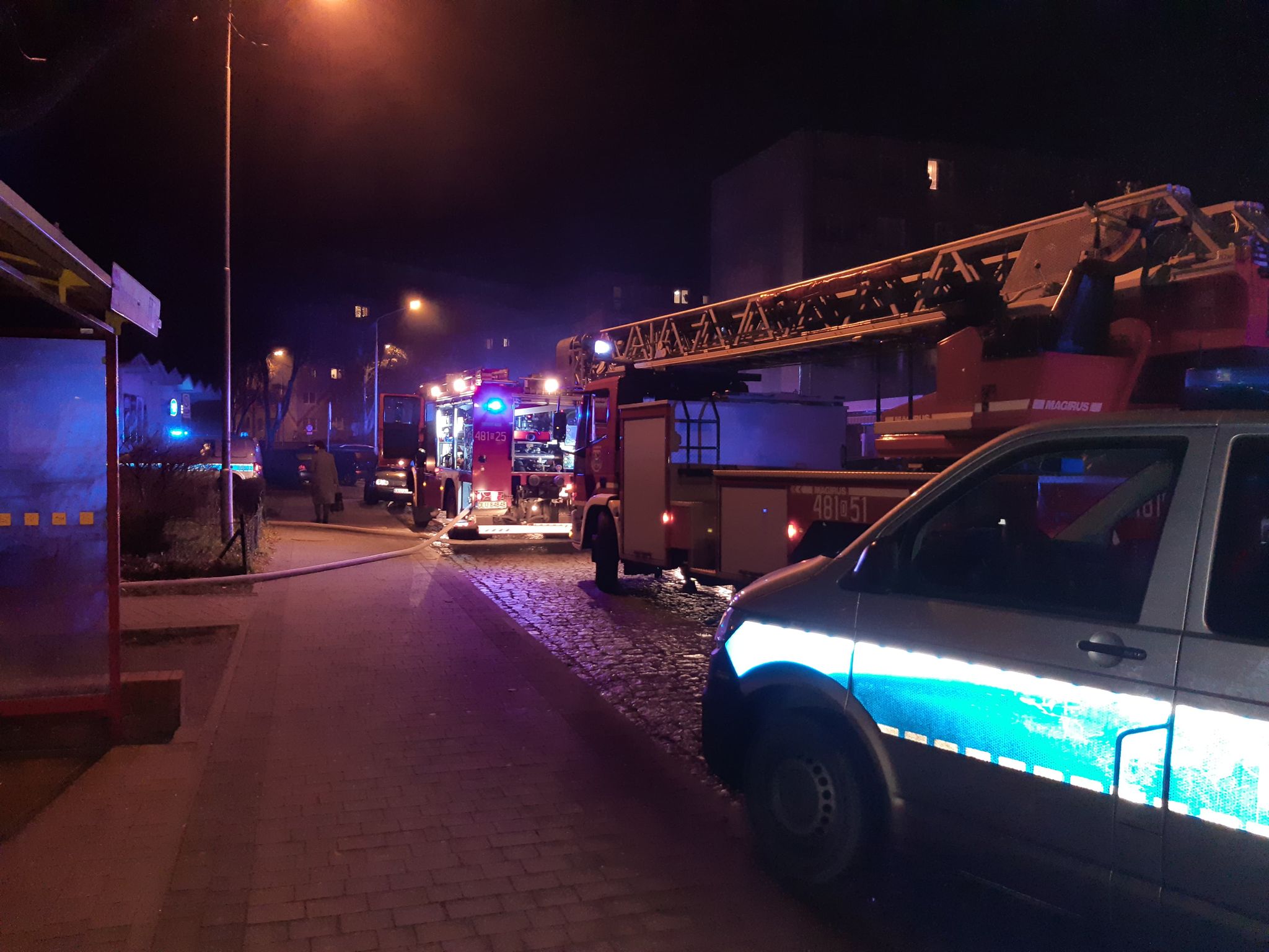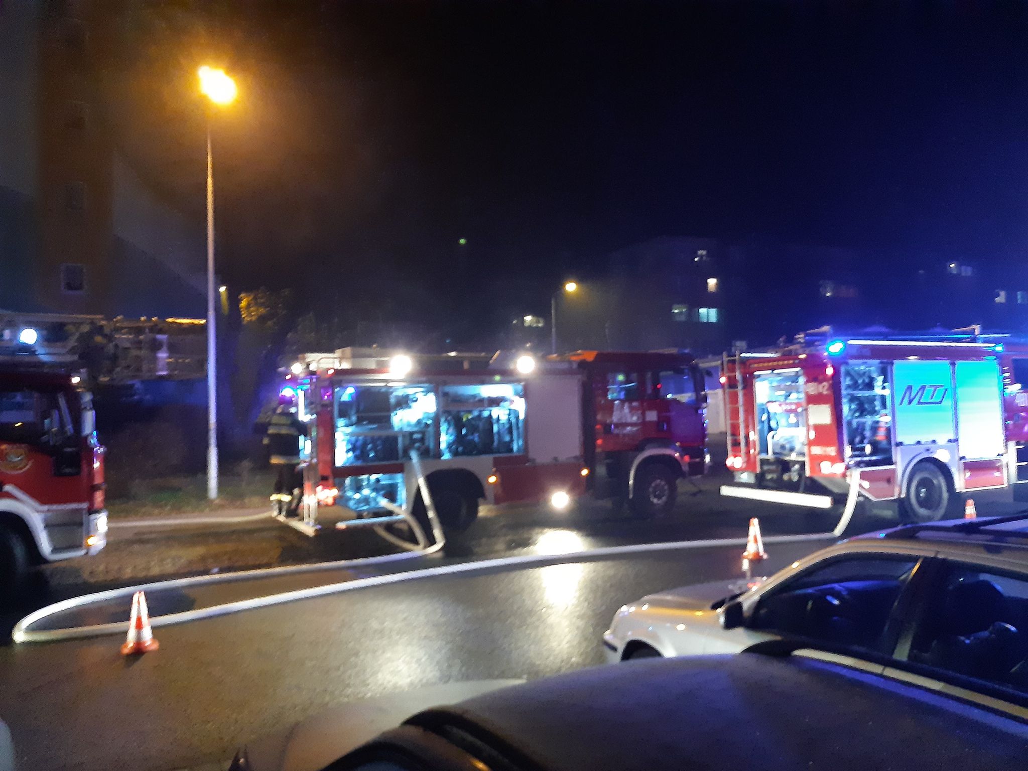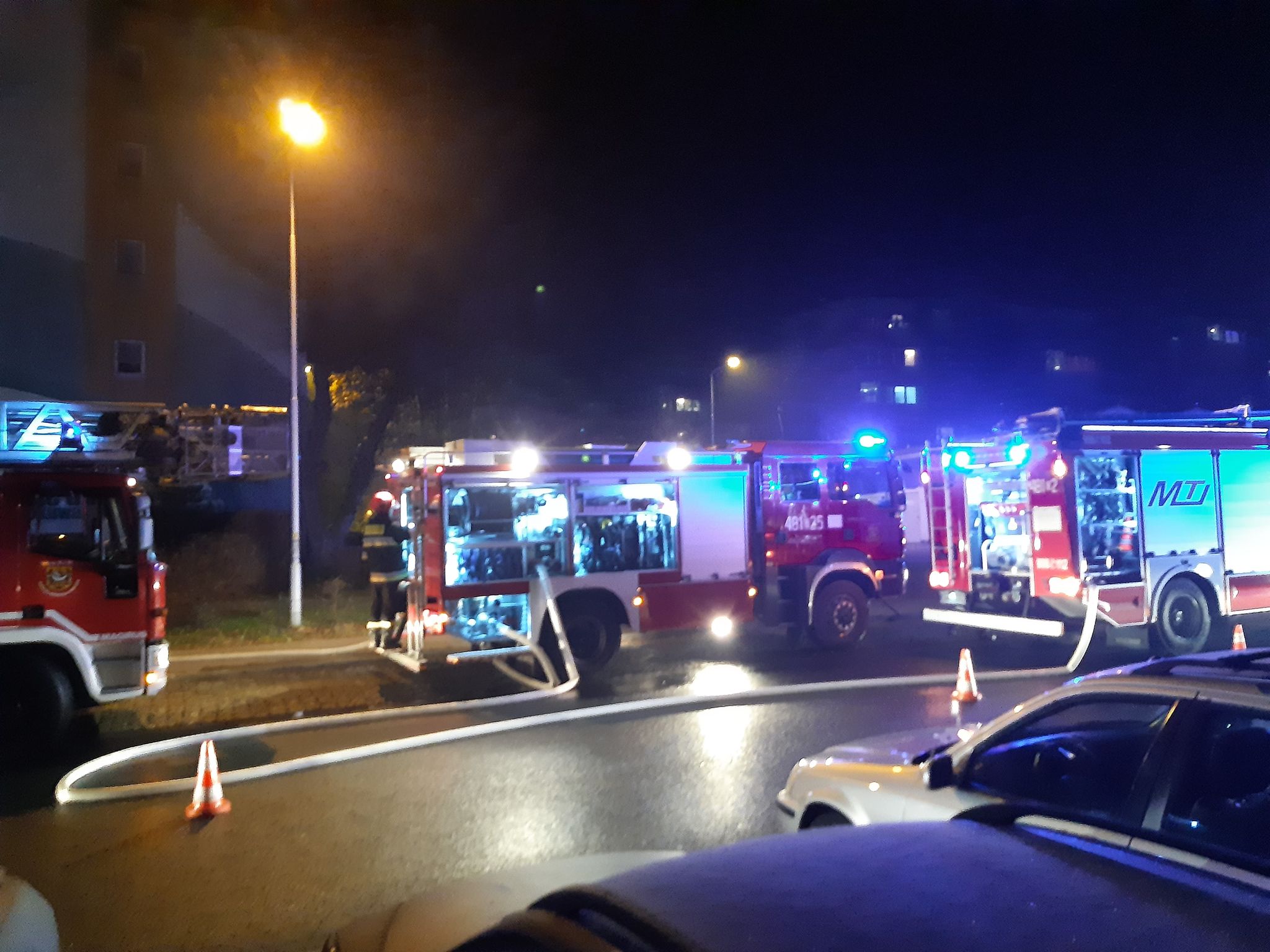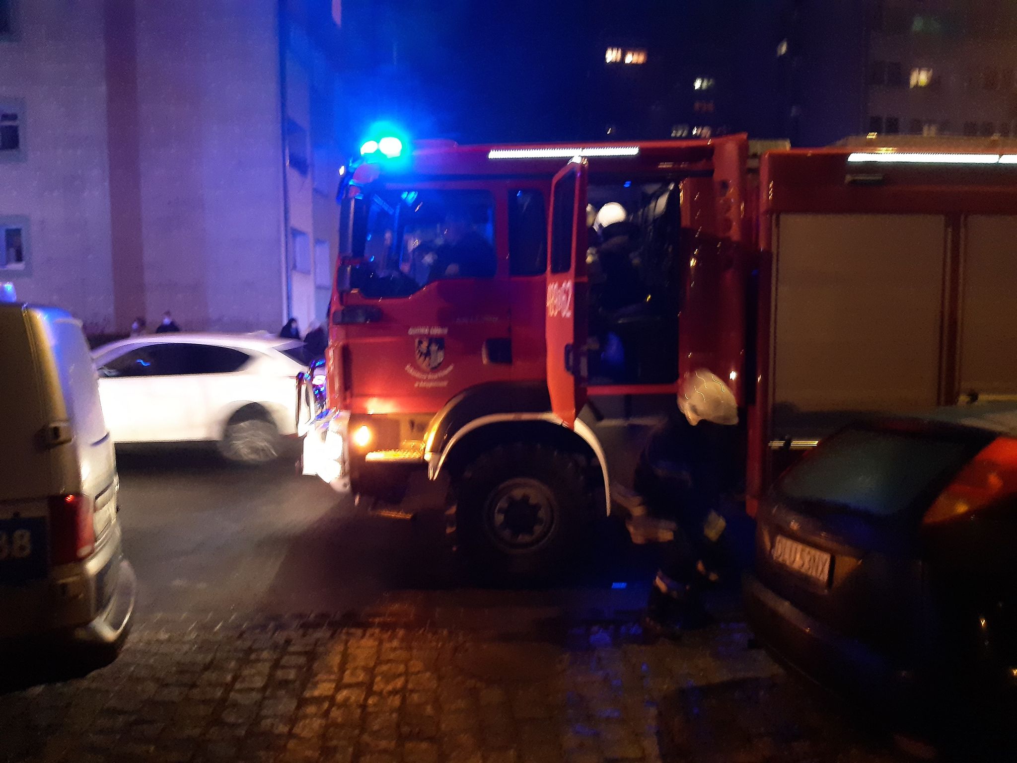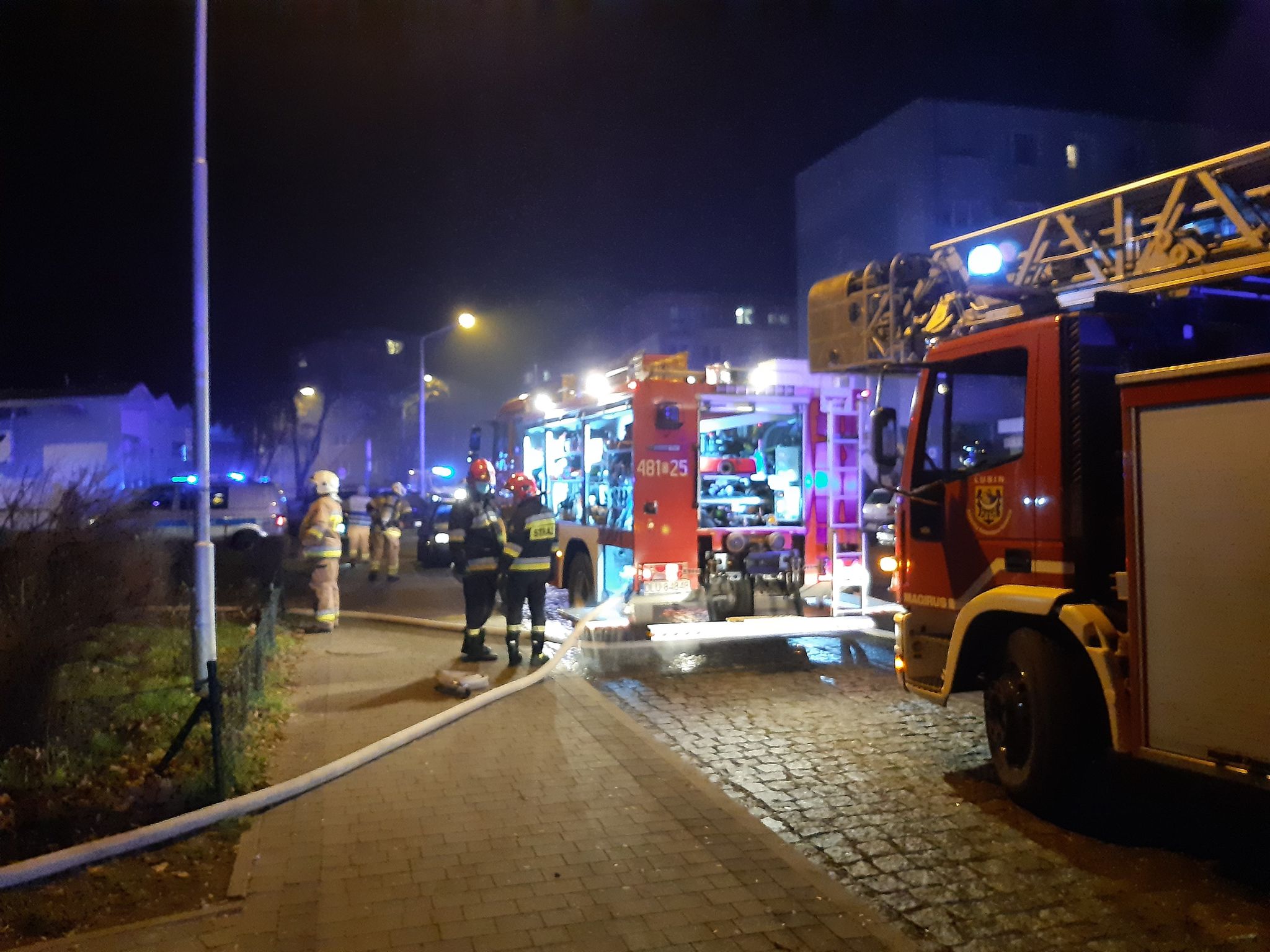 Zgłoszenie o pożarze wpłynęło do dyżurnego lubińskiej komendy straży pożarnej około godz. 20. Na miejscu oprócz strażaków, pojawiło się także kilka policyjnych patroli oraz karetka pogotowia.