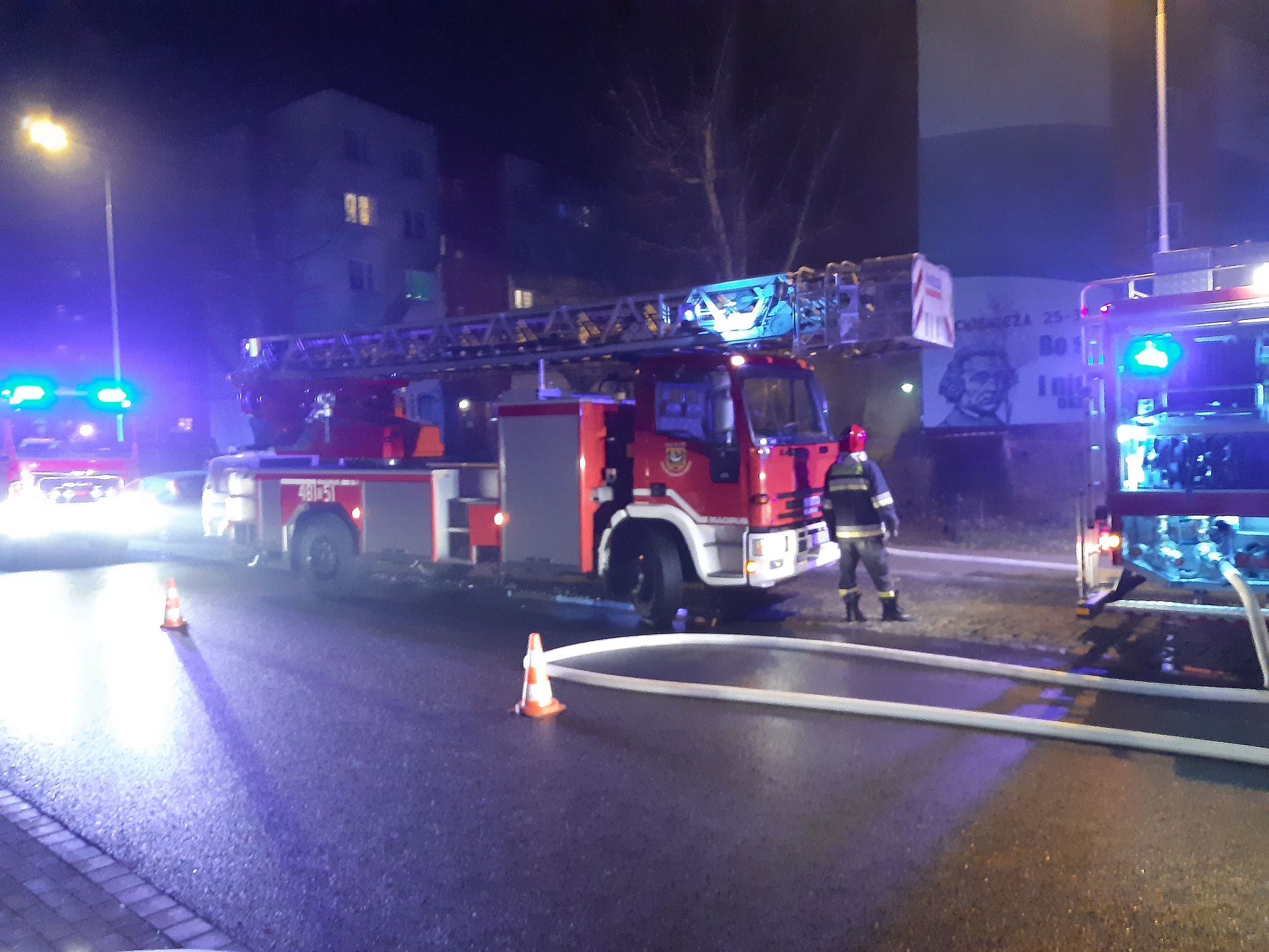 – Obecnie trwa oddymianie oraz przeszukiwanie pomieszczeń oraz klatki schodowej budynku. Są naprawdę trudne warunki do prowadzenia działań. Zadymienie było bardzo duże. Strażacy są bardzo wycieńczeni – informuje dyżurny lubińskiej straży.