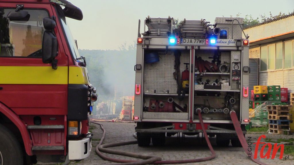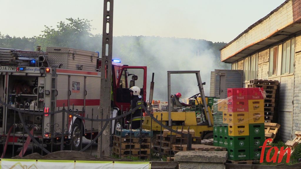 Ogień ogarnął około 100 drewnianych palet oraz skrzynki po napojach spożywczych. Strażacy w pierwszej kolejności zadbali, by płomienie nie rozprzestrzeniły się na sąsiadujące budynki.