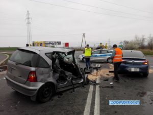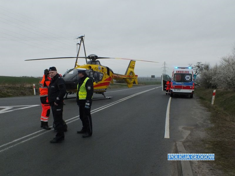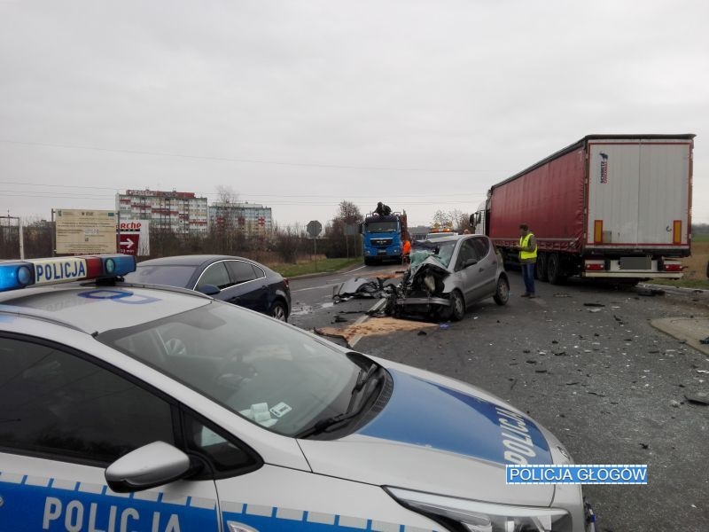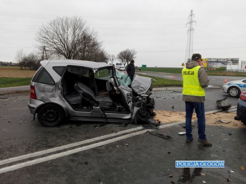 D0 zdarzenia doszło dziś o godz. 7 rano. – Kierujący samochodem ciężarowym Man 43-letni obywatel Białorusi, na skrzyżowaniu ul. Piłsudskiego i Wojska Polskiego z nieustalonych  przyczyn nie zastosował się do obowiązującego znaku stop i zderzył się z pojazdem marki Mercedes.W wyniku zdarzenia obrażenia odniosły trzy osoby, pasażerowie mercedesa, które zostały przewiezione do szpitala. Jeden z nich w stanie ciężkim został przetransportowany przez śmigłowiec lotniczego pogotowia ratunkowego – relacjonuje podinspektor Bogdan Kaleta, oficer prasowy Komendy Powiatowej Policji w Głogowie.