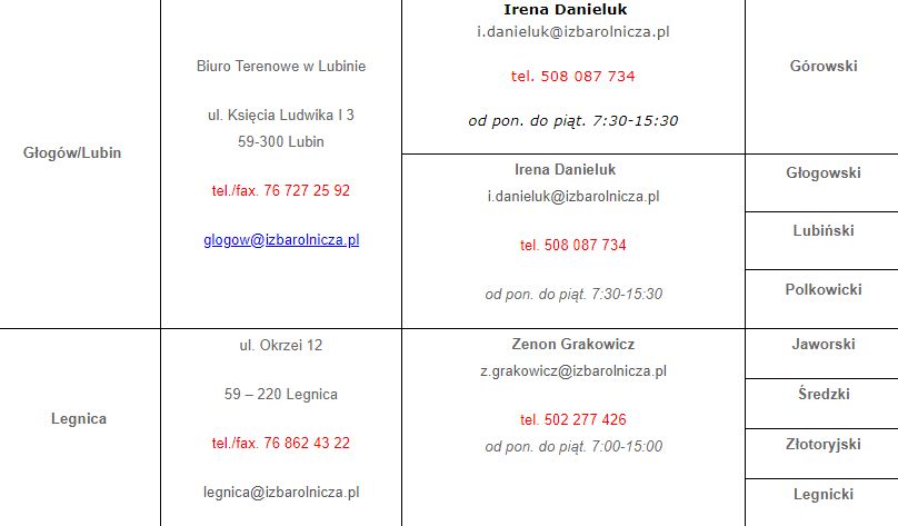 Dane kontaktowe oraz godziny urzędowania biur Izby z naszego regionu prezentujemy poniżej: