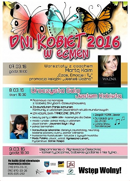 – W tym roku panie świętować będą trzy dni. Staraliśmy się tak wzbogacić program uroczystości, aby stał się okazją dla wszystkich zaproszonych pań do zadbania zarówno o swoje zdrowie jak i wygląd, a także o dobry nastrój. Mam nadzieję, że sprostamy tym oczekiwaniom. W imieniu burmistrza i przewodniczącego rady miejskiej oraz wszystkich organizatorów serdecznie zapraszam i zachęcam do wspólnego świętowania – mówi Monika Żmijewska z biura burmistrza.