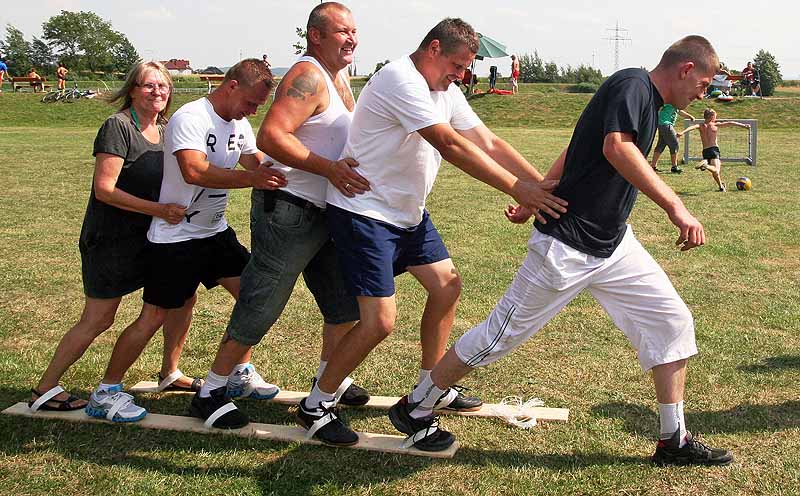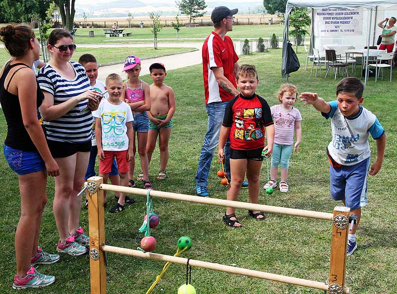 Uczestnicy zmagali się m.in. w konkurencji „narty na trawie”, w siatkówce plażowej oraz w wyciskaniu sztangi. Aby nabrać sił, można było zjeść kiełbaskę lub kaszankę z grilla, bigos albo coś słodkiego – były domowe ciasta i gofry z dodatkami. Podczas imprezy żar lał się z nieba, więc powodzeniem cieszyły się zimne napoje – oczywiście wyłącznie bezalkoholowe.