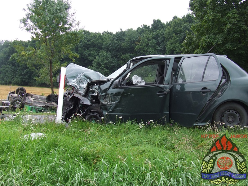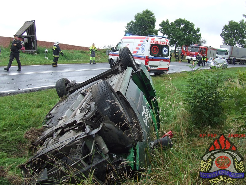 – W wypadku brało w sumie sześć osób. W wyniku zderzenia Renault Kangoo dachowało w przydrożnym rowie, w którym znalazła się również Skoda Fabia. Przód samochodu został całkowicie zniszczony. Seat Cordoba natomiast zatrzymał się na pasie w kierunku Wrocławia – mówi Łukasz Starowicz z PSP w Jaworze.DSCF7681