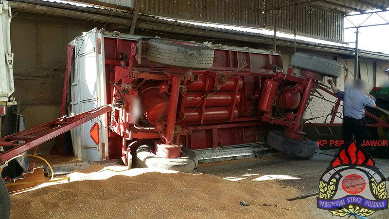 – Przyczepa ze zbożem przewróciła się i uwięziła mężczyznę na wywrotnicy – mówi Łukasz Starowicz, rzecznik prasowy Komendy Powiatowej Państwowej Straży Pożarnej w Jaworze. – Elementy przyczepy unieruchomiły poszkodowanego, który znajdował się w zsypie – dodaje rzecznik.