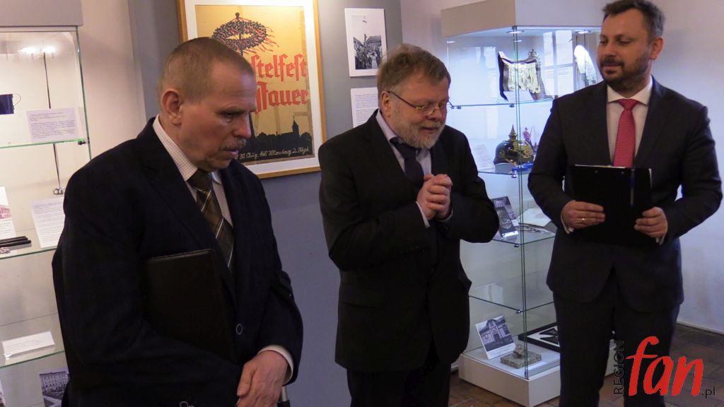 Piątkowe otwarcie wystawy poprzedziła wizyta doktora Wolfganga Kesslera, emerytowanego dyrektora Biblioteki im. Martina Opitza w Herne. Gość osobiście oprowadził zainteresowanych wernisażem oraz dzielił się wiedzą na temat eksponatów. Najstarszym z nich jest mapa księstwa jaworskiego autorstwa Martina Kühna wydana w 1662 r. Efektownym wizualnie eksponatem jest sztandar Towarzystwa Śpiewaczego ufundowany w XIX wieku.
