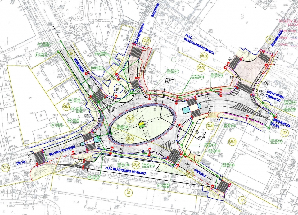 Rondo ma spinać pięć ulic: Wojska Polskiego, Podwale, Sienkiewicza, Basztową i Kościuszki. Teraz kierowcy mają tu problem z wyjazdem z dróg podporządkowanych, zwłaszcza w godzinach szczytu.