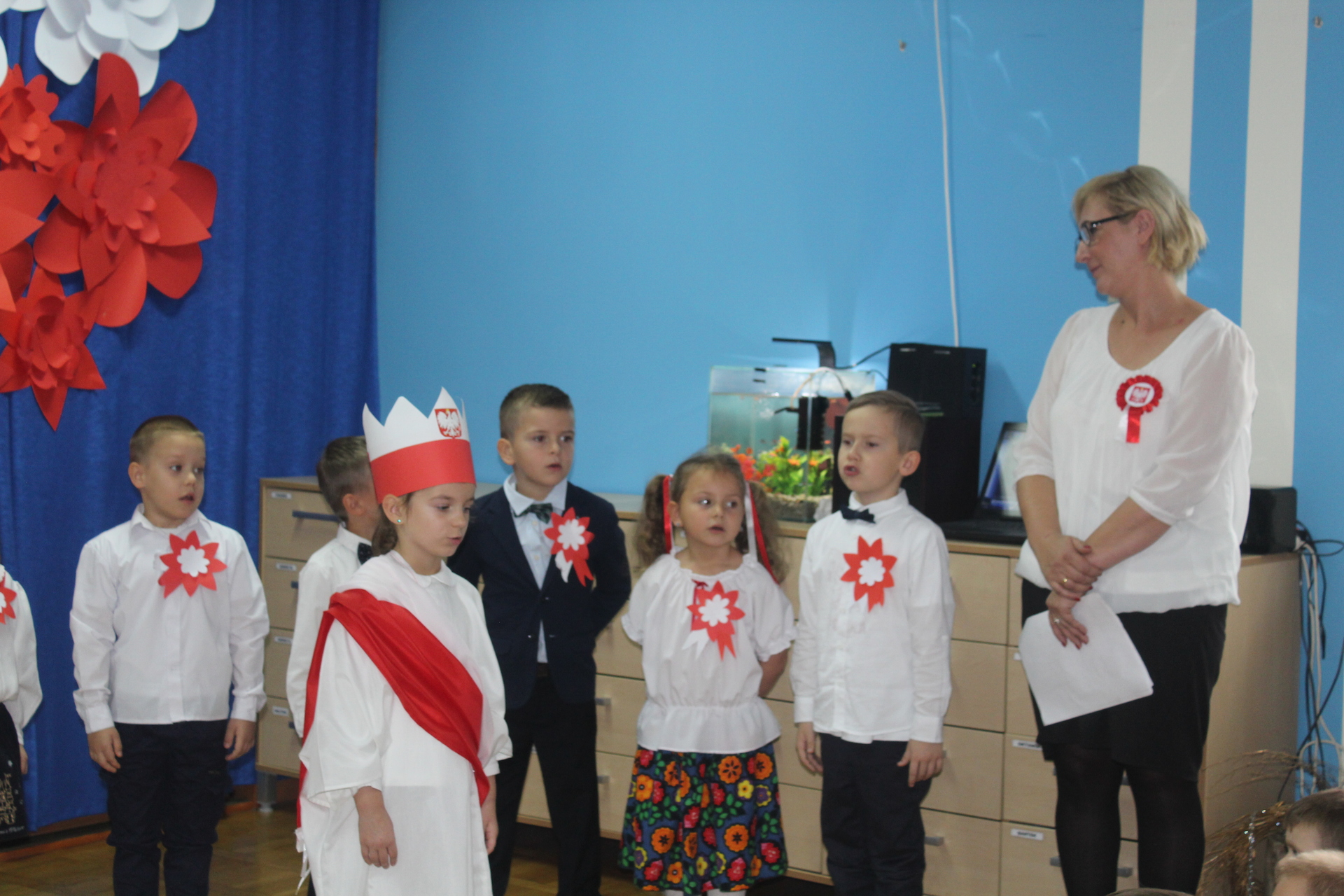 Maluchy wyśpiewały też i wyrecytowały, czym jest niepodległość. Pokazały, jak się rodziła. Dzieci były bardzo przejęte występami, zwłaszcza że obejrzeli je m.in. ich rodzice. Wszyscy wspólnie też zaśpiewali hymn państwowy. Pamiątką po rocznicowych obchodach będą nie tylko zdjęcia i wspomnienia, ale też kotyliony.
