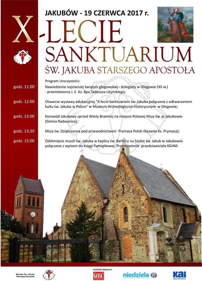 – Z nadzieją oczekując na jubileusz z pokorą pragnę zaprosić wszystkich do przybycia na gościnną Ziemię Głogowską do Sanktuarium świętego Jakuba Apostoła w Jakubowie. Jestem przekonany, że Wasza obecność będzie prawdziwie duchowym i historycznym wydarzeniem dla całego regionu Zagłębia Miedziowego, a także naszej diecezji – zachęca do udziału w uroczystości ks. kan. Stanisław Czerwiński, proboszcz i kustosz Sanktuarium przy Parafii św. Jakuba St. Ap. w Jakubowie, na stronie internetowej parafii.