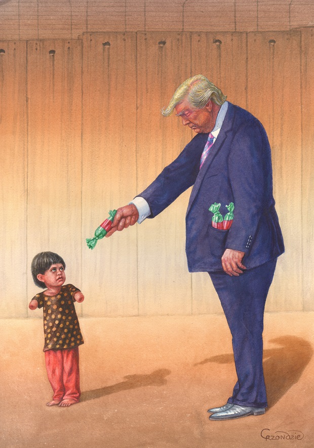 Praca Krzysztofa Grzondziela „Pokój wg Donalda Trumpa” została uhonorowana nagrodą im. Andrzeja Waligórskiego, przyznawaną w ramach międzynarodowego przeglądu Satyrykon.