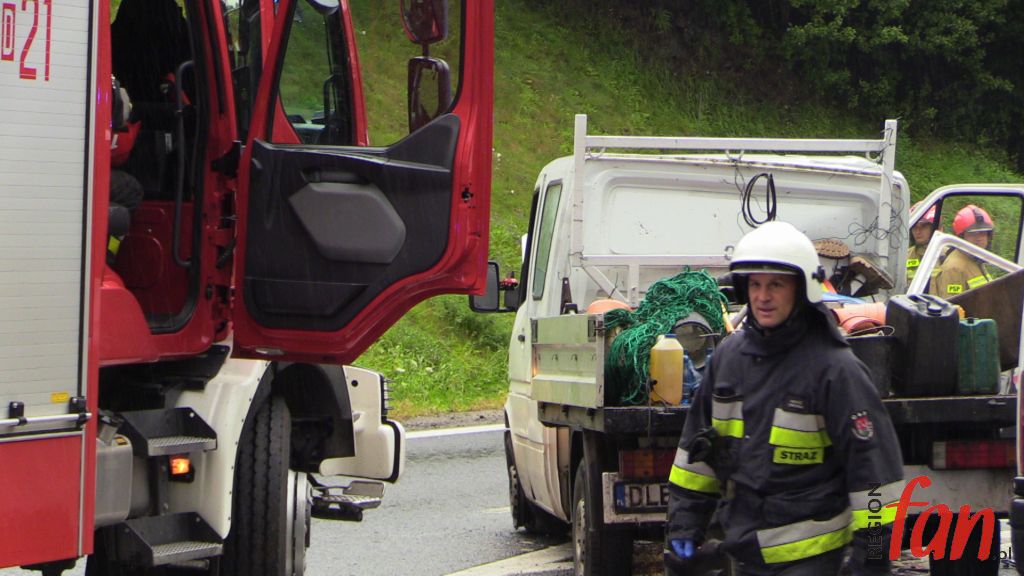 Aura nie sprzyja kierowcom. Kiepska widoczność, ślisko, często nadmierna prędkość są przyczynami wypadków i kolizji. Chwila nieuwagi kierującego busem kosztowała zniszczone auto i obrażenia. Bus wpadł w poślizg i zderzył się z nadjeżdżającym autem dostawczym. W zdarzeniu brało udział siedem osób. Dwóm osobom poszkodowanym na miejscu pomocy medycznej udzielały Zespoły Ratownictwa Medycznego. Zdarzenie zabezpieczały służby OSP i JRG z tereny powiatu jeleniogórskiego i jaworskiego. O godz. 18:20 służby ratunkowe ponownie wyjechały do Kaczorowa. Na 443 kilometrze DK3 dachowało auto osobowe. Poszkodowani samodzielnie wydostali się z pojazdu. Są utrudnienia w ruchu w miejscu zdarzenia.