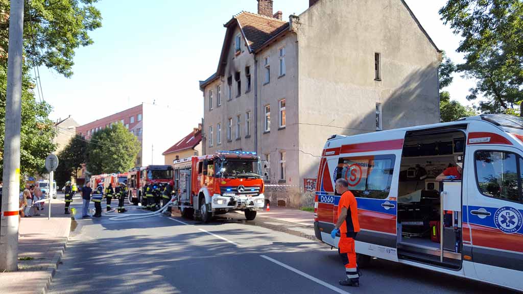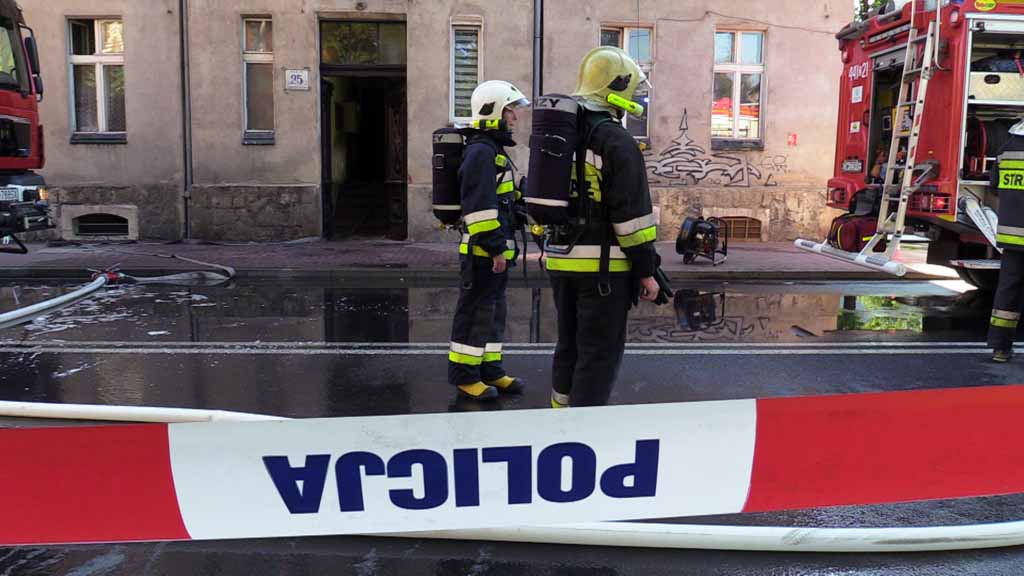– Po naszym przybyciu języki ognia wydobywały się z okien na zewnątrz. Podjąłem decyzję o ewakuacji uwięzionych osób nie czekając na podnośnik koszowy – relacjonuje starszy kapitan Tomasz Kita z jaworskiej komendy straży pożarnej.