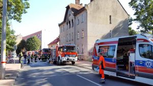 To niestety nie były ćwiczenia. Policja wstrzymała ruch, na ulicy zaczęły pojawiać się strażackie wozy, błyskawicznie przyjechały karetki, pogotowie energetyczne i gazowe. Pożar wybuchł na drugim piętrze i odciął drogę ucieczki mieszkańcom z zaadaptowanego na mieszkanie poddasza.