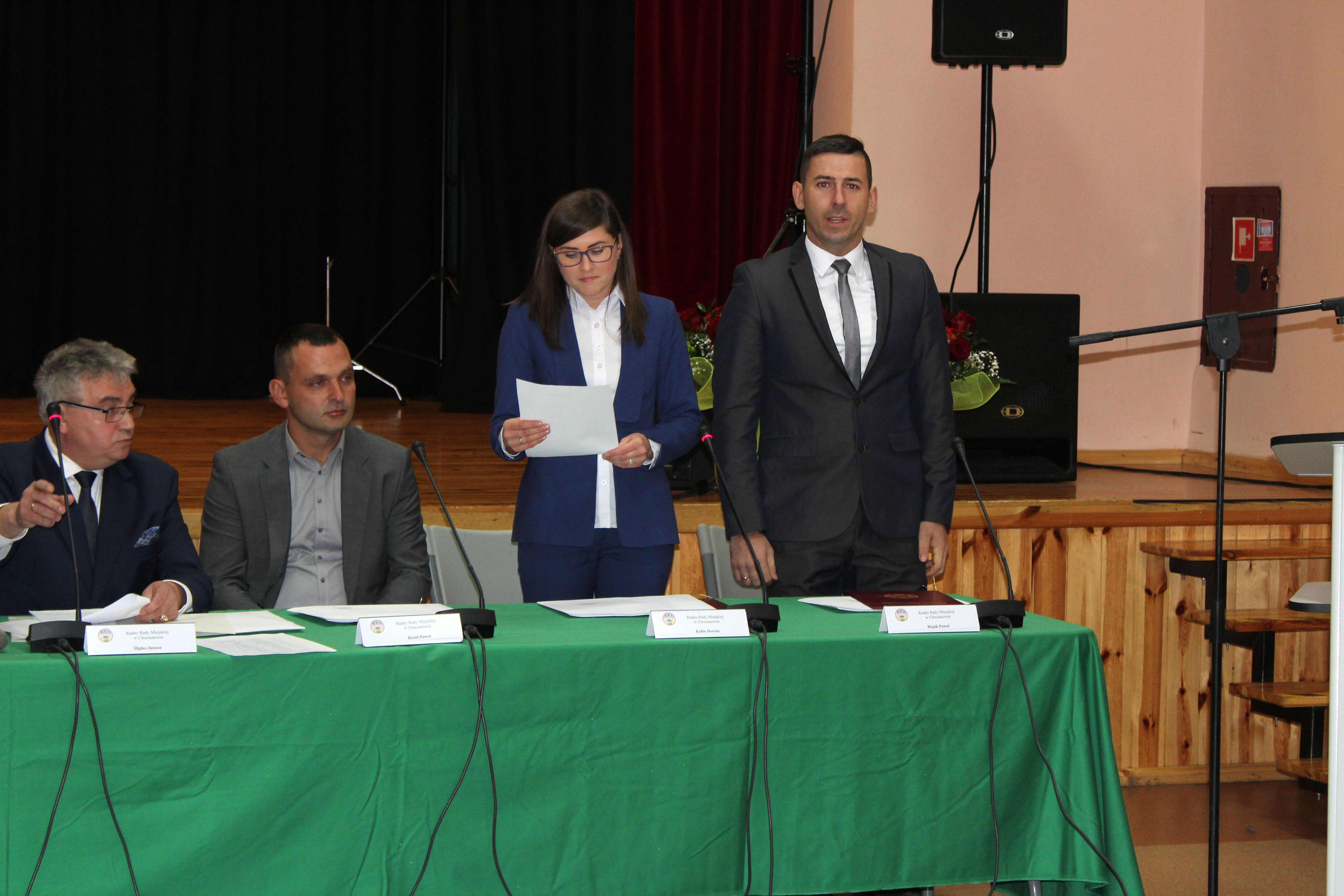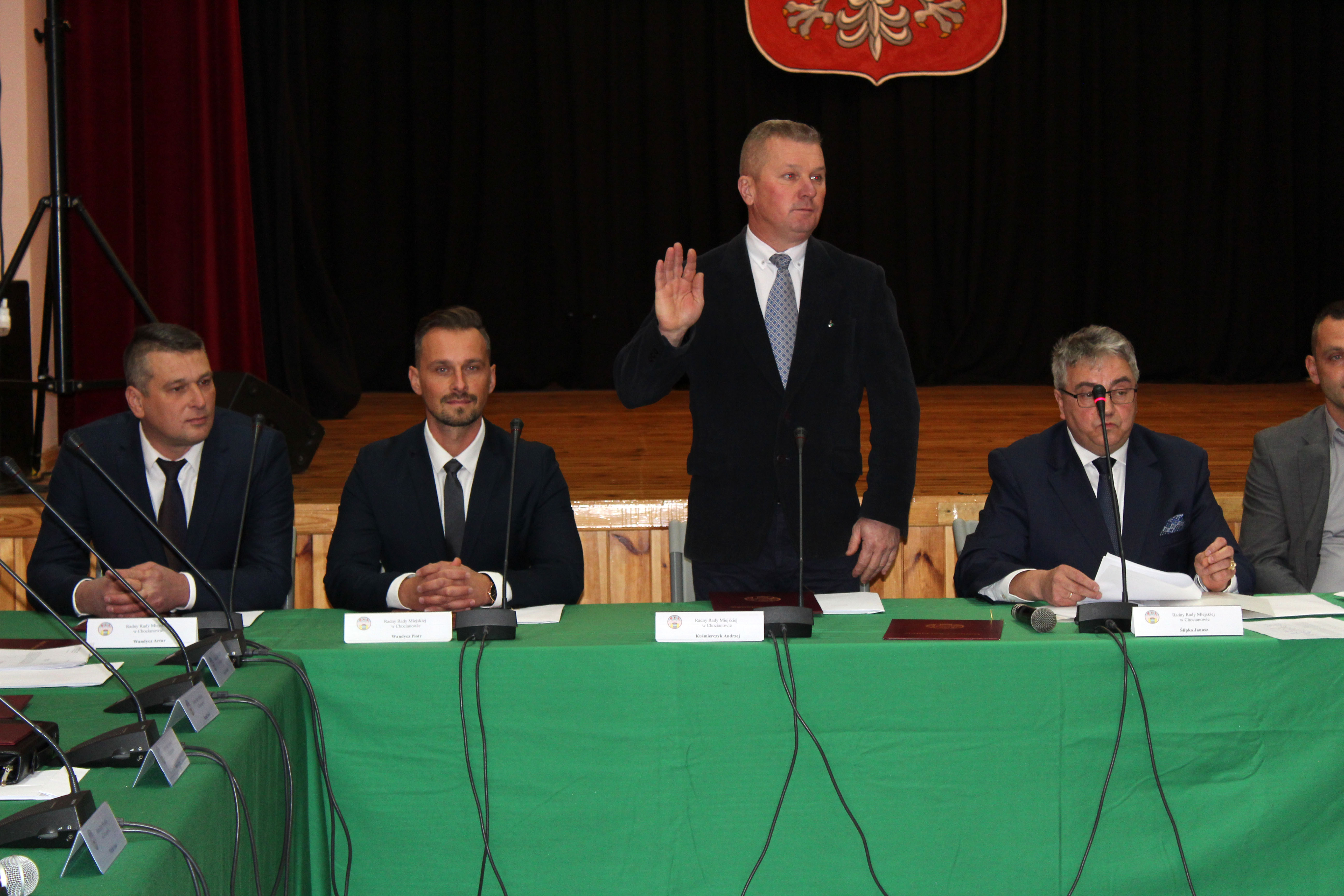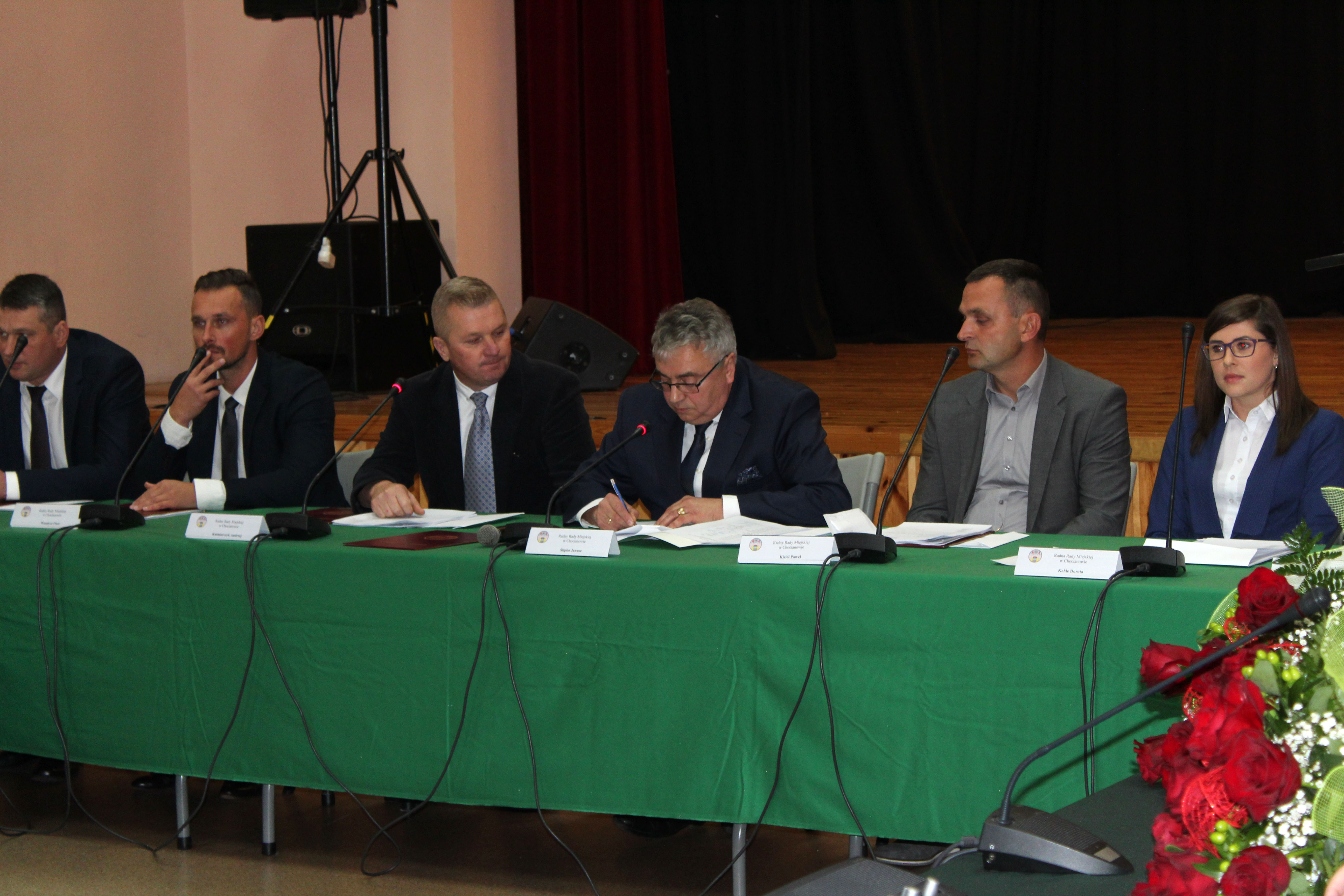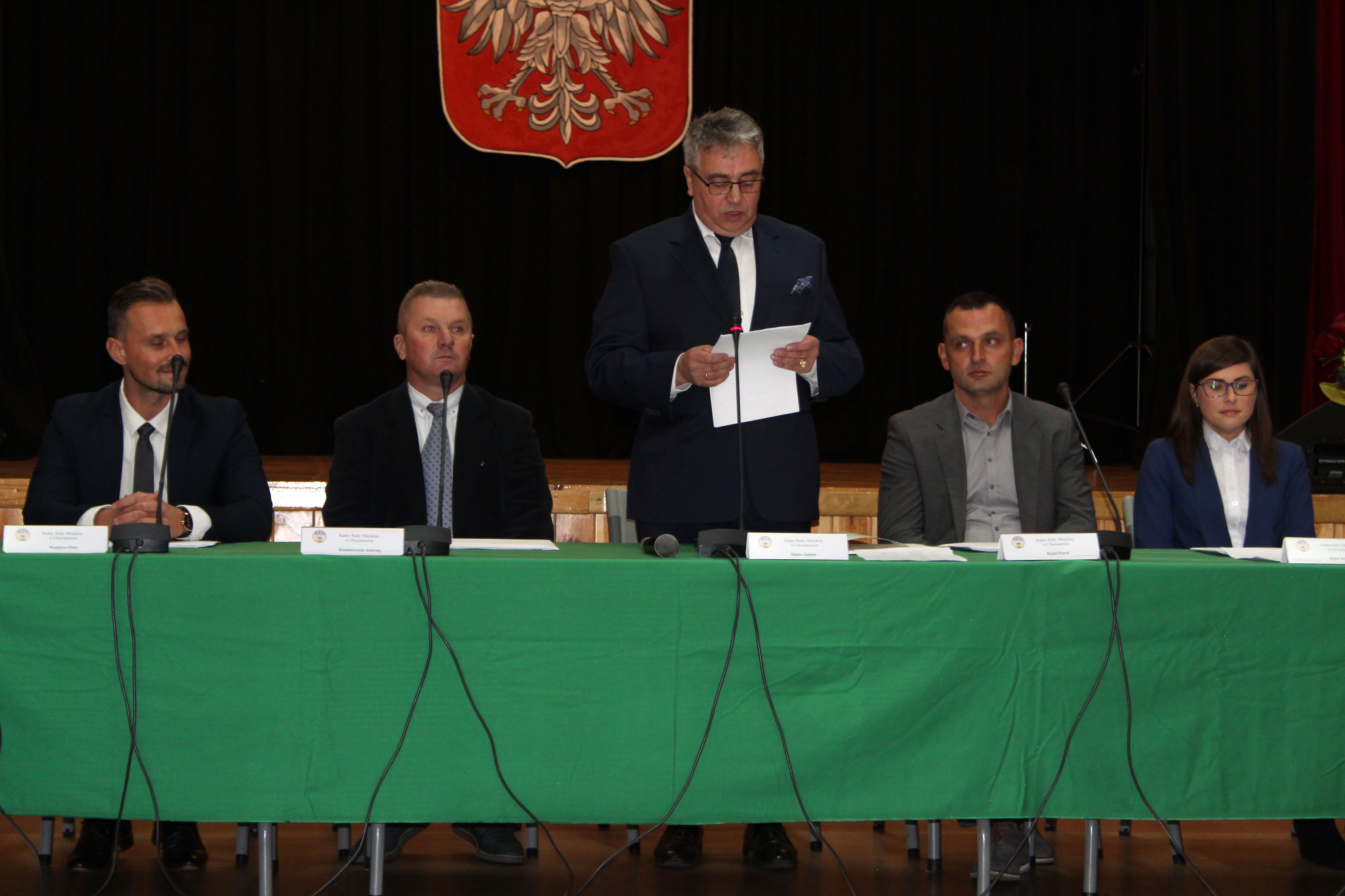Na premierowej sesji pojawił się komplet radnych, dzięki czemu wszystkie formalności zostały spełnione już na pierwszym spotkaniu. Obrady poprowadził Przewodniczący Senior – Janusz Ślipko. Jako pierwsi ślubowali radni według kolejności alfabetycznej. Następnie przyszedł czas na informacje ustępującego Burmistrza Miasta i Gminy Chocianów o stanie Gminy, po czym oficjalne ślubowanie złożył nowo wybrany burmistrz Tomasz Kulczyński.