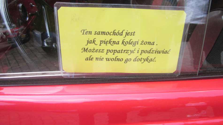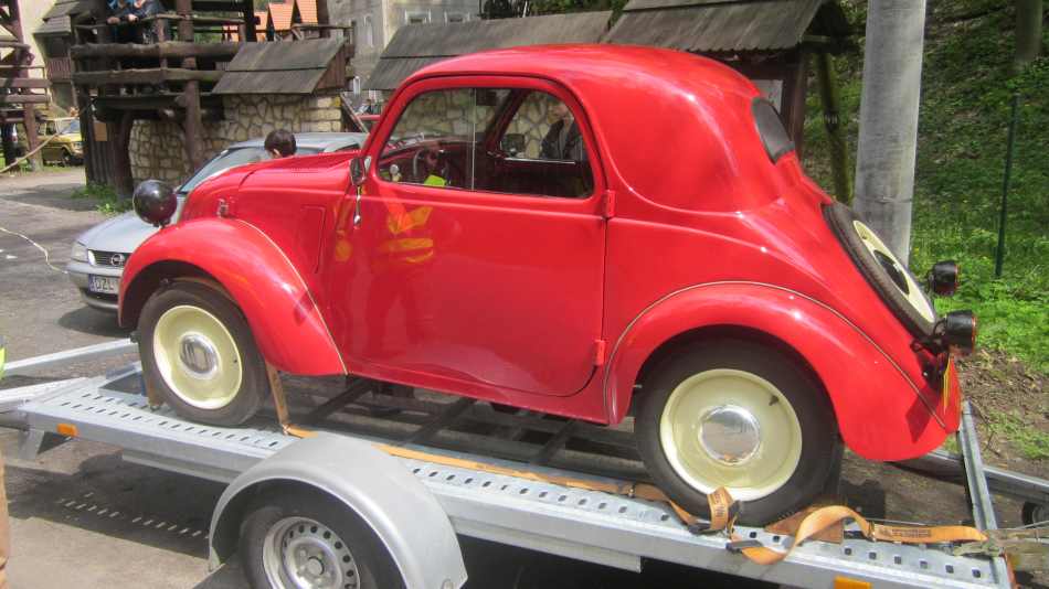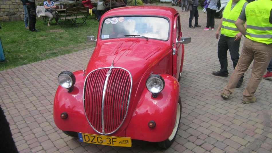 Największą perełką dla zwiedzających był jednak 80-letni Fiat 500A Topolino. Fiaty Topolino produkowane były przed wojną, przede wszystkim we Włoszech, na rozkaz samego Benito Mussoliniego. Okaz goszczący na zlocie powstał jednak w Polsce w 1937 r., a jego szczęśliwym posiadaczem jest pan Edmund ze Zgorzelca, stały bywalec i zdobywca licznych nagród na podobnych imprezach. Od razu widać, że ta maszyna to powód do dumy i bardzo dużo znaczy dla jego właściciela. Pan Edmund chętnie opowiada o swojej bryce i jego historii, ale nikomu nie pozwala jej dotykać. Na szybie swojego auta umieścił nawet kartkę z ciekawym i bardzo wymownym napisem: „Ten samochód jest jak piękna kolegi żona. Możesz popatrzeć i podziwiać, ale nie możesz go dotykać”.