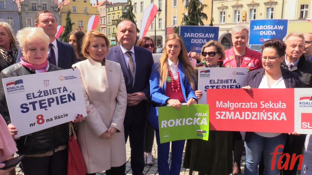 Miasto chleba i pokoju odwiedziło trzech kandydatów z list do europarlamentu: Jarosław Duda, Elżbieta Stępień oraz Julia Rokicka. Towarzyszyli im m.in. poseł Robert Kropiwnicki, radny Sejmiku Piotr Borys, burmistrz Emilian Bera, wójt gminy Wądroże Wielkie Elżbieta Jedlecka i radny powiatowy Mariusz Barański.