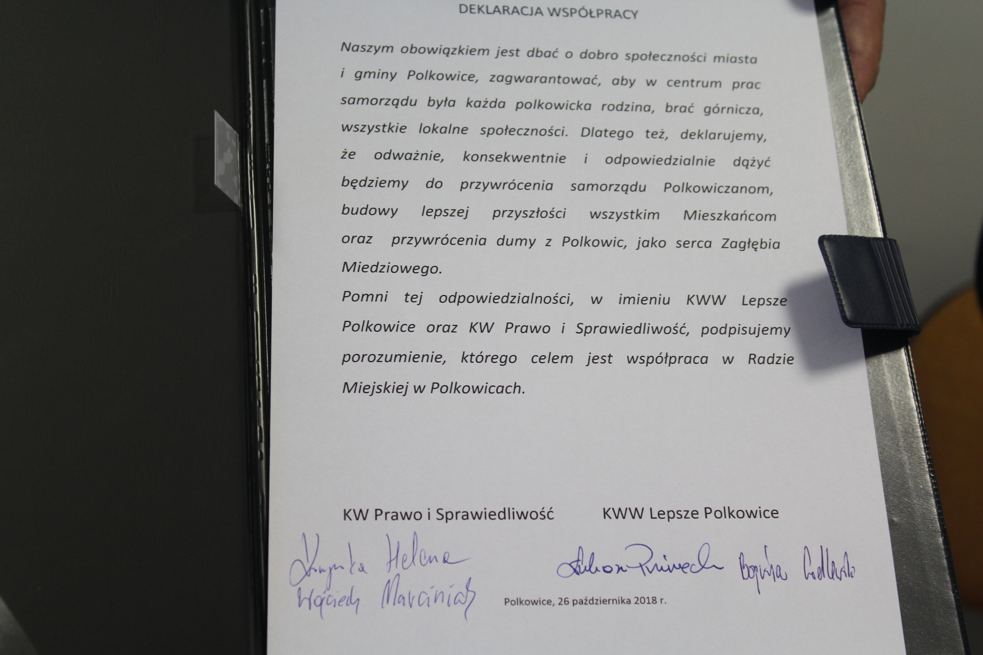 Porozumienie o współpracy podpisali także Helena Krupska, przewodnicząca struktur PiS w powiecie polkowickim oraz Bogusław Godlewski, prezes stowarzyszenia Lepsze Polkowice.